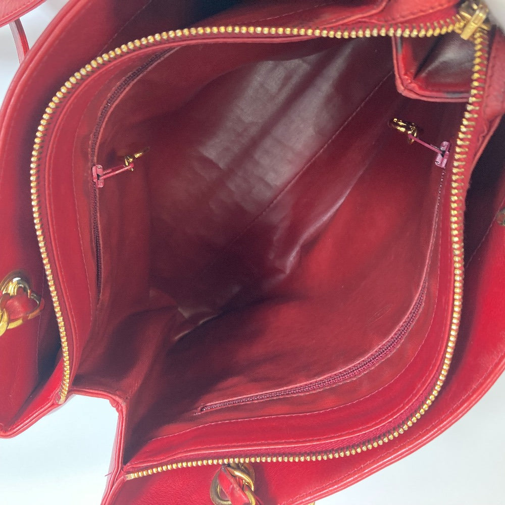 CHANEL Shoulder Bag lambskin Red CCCOCO Mark Turnlock outside flap Women Used Authentic