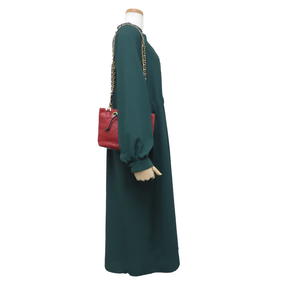 CHANEL Shoulder Bag lambskin Red Chain Bicolole Women Used Authentic