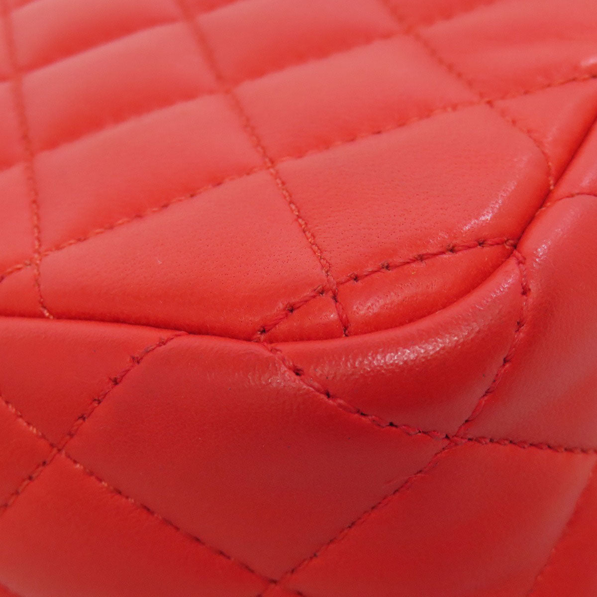 CHANEL Shoulder Bag lambskin Red ChainShoulder COCO Mark Gold Metal Women Used Authentic