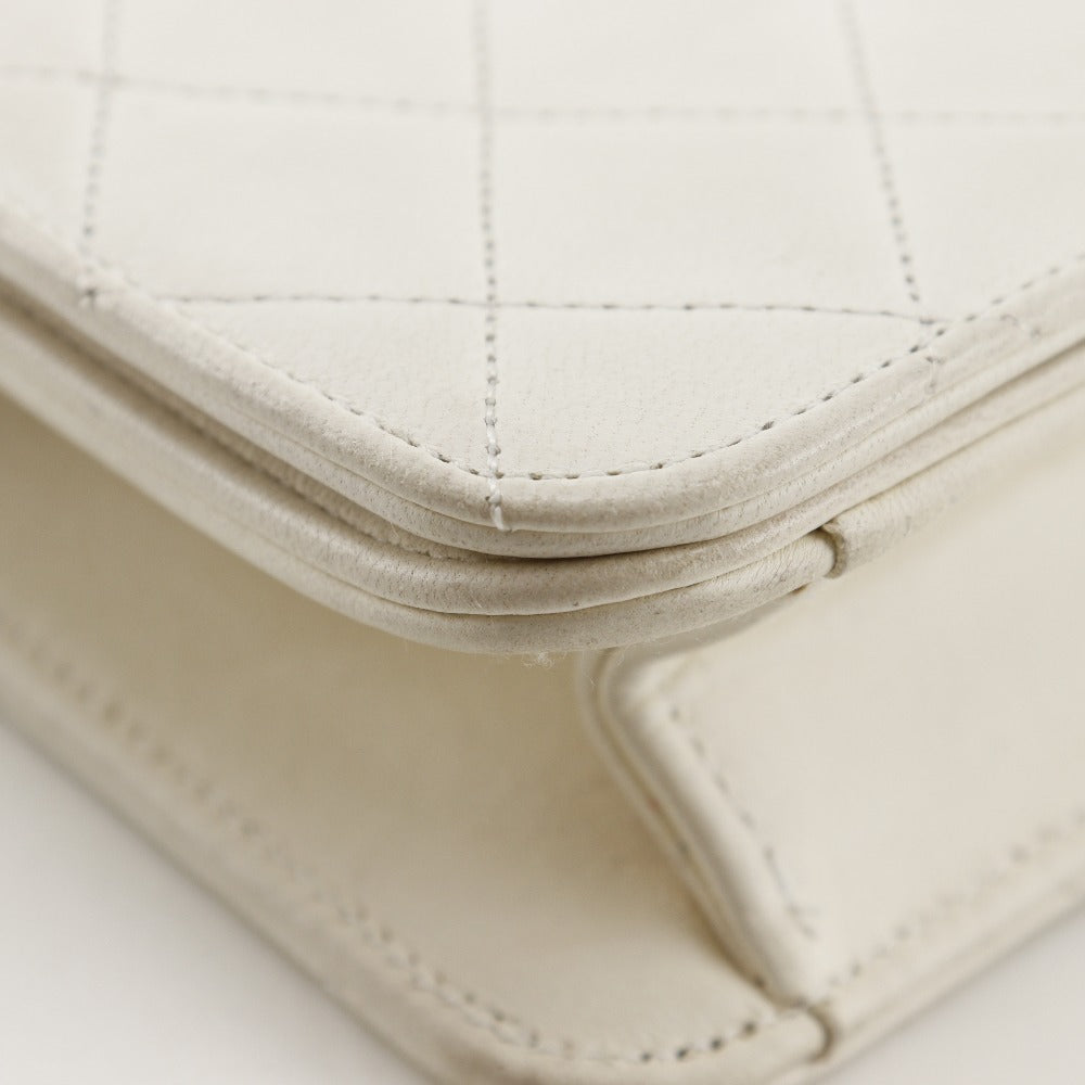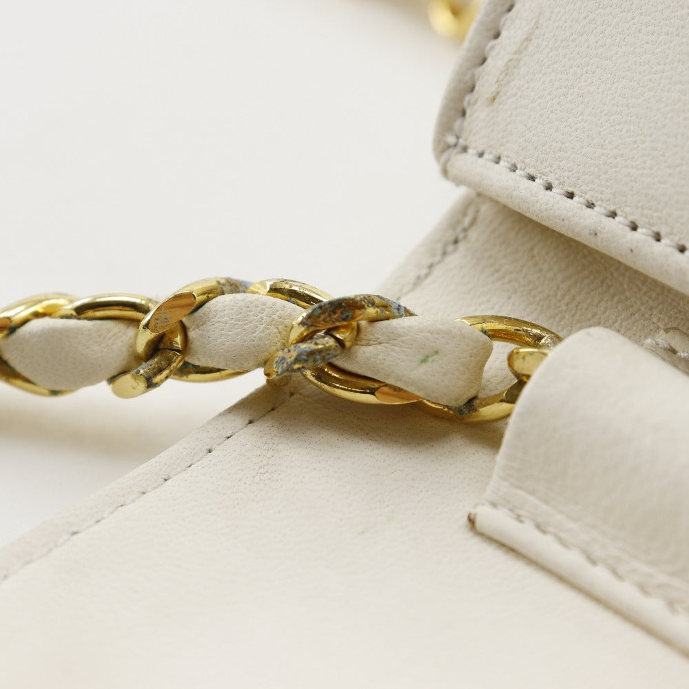 CHANEL Shoulder Bag lambskin White Matrasse ChainShoulder Women Used Authentic