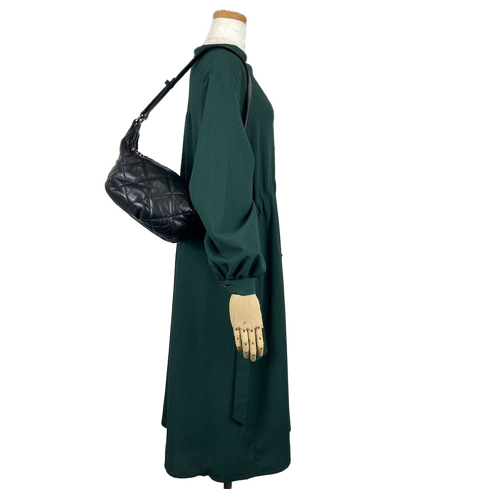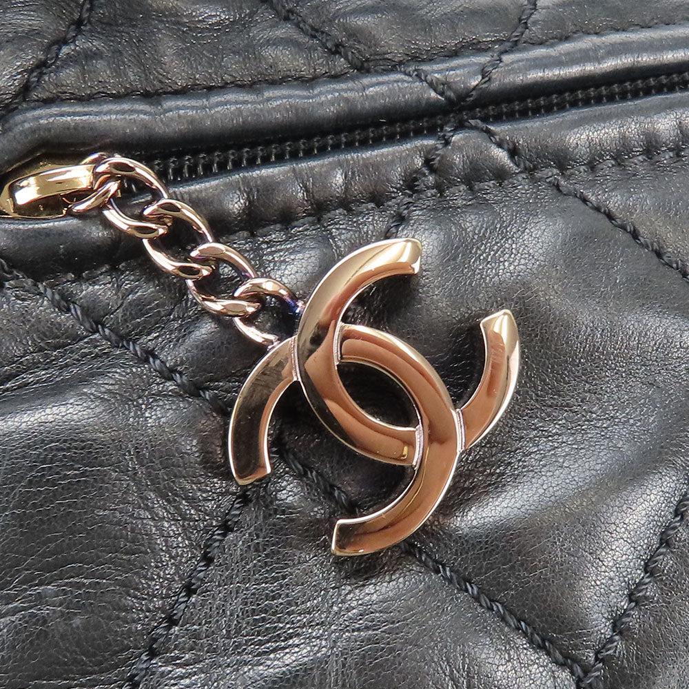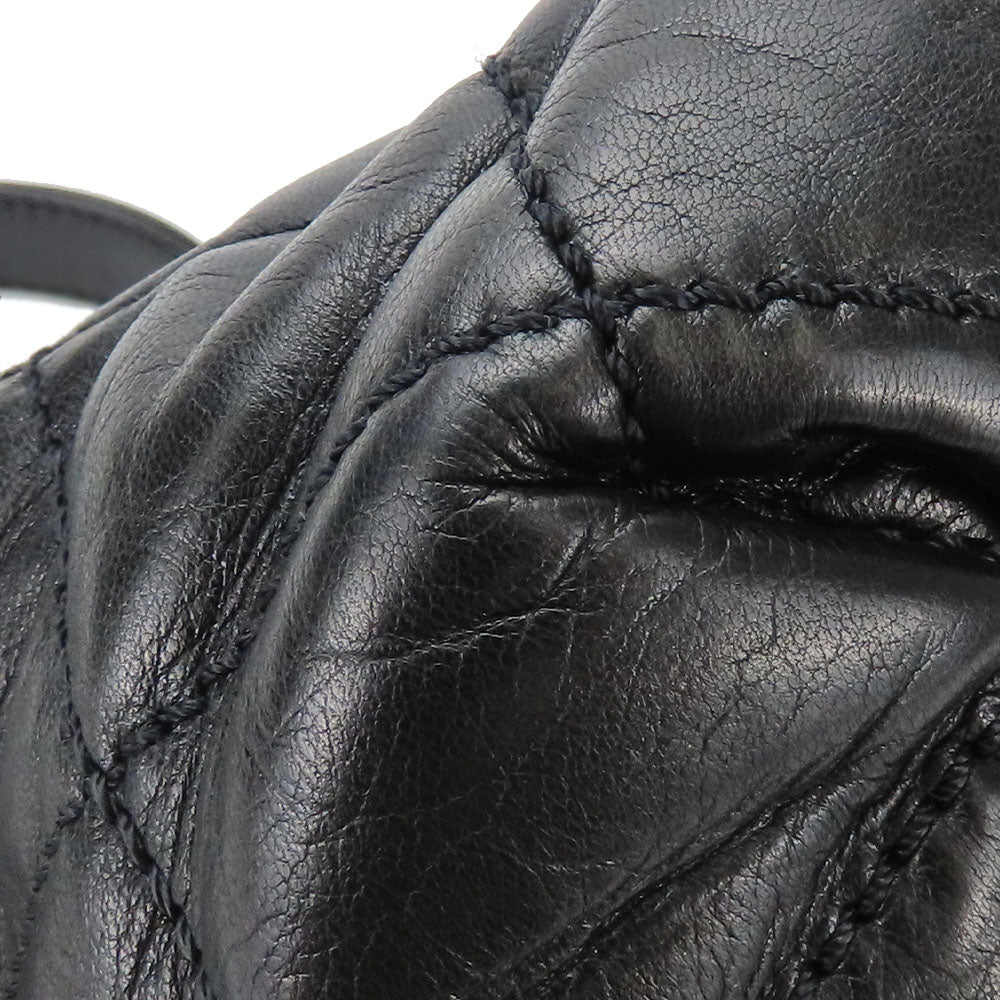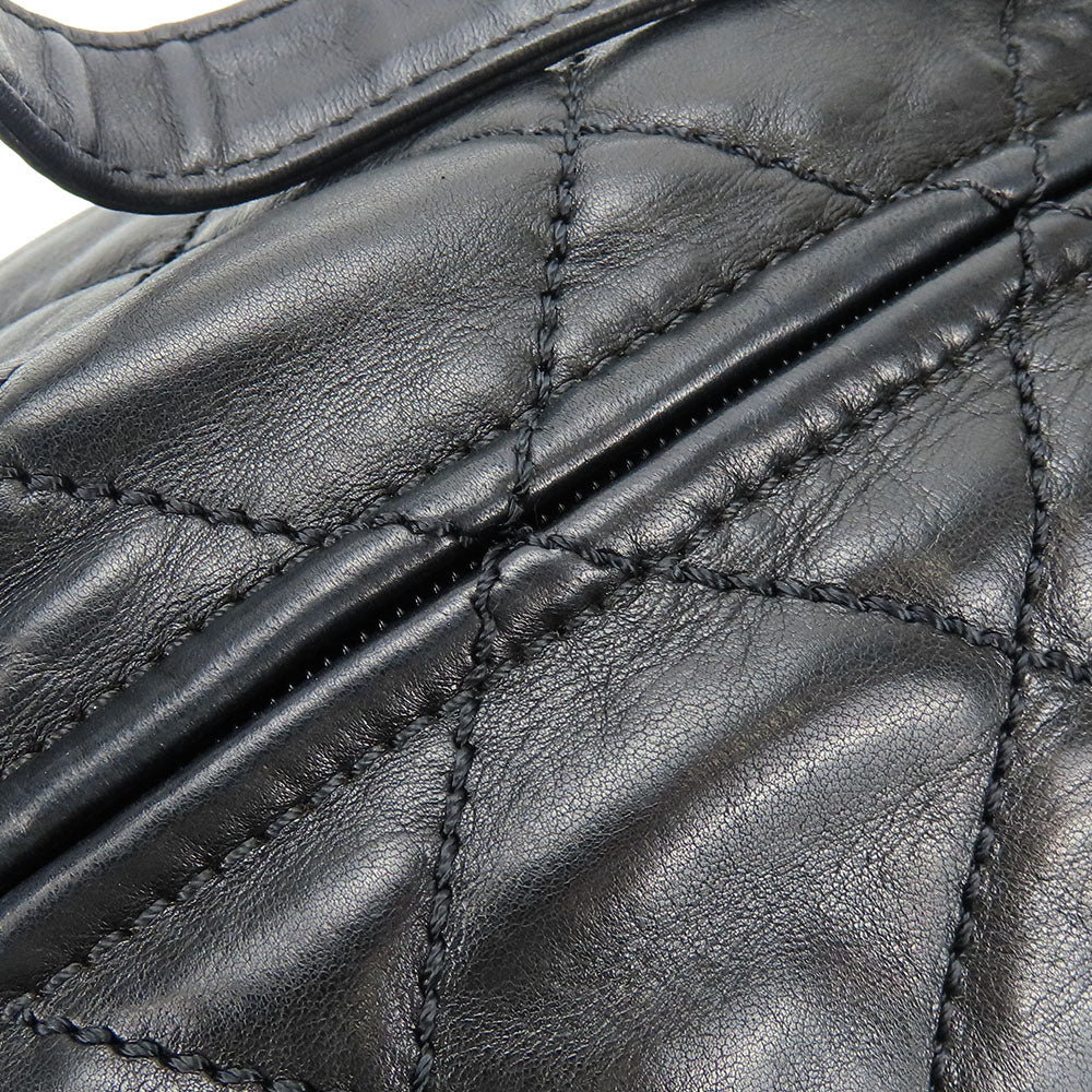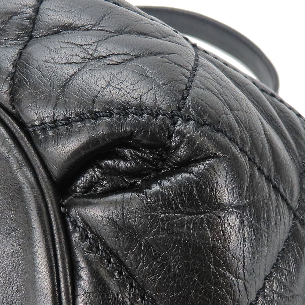 CHANEL Shoulder Bag leather black Matelasse stitch Women Used Authentic