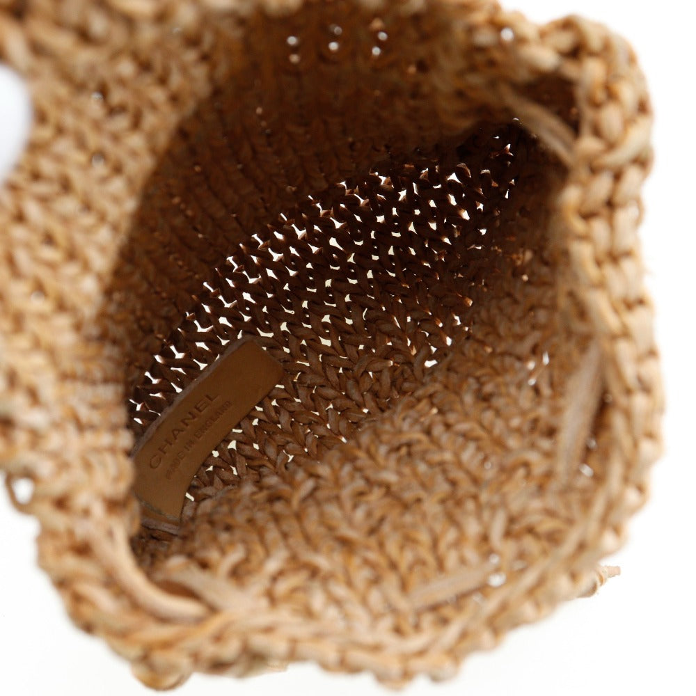 CHANEL Shoulder Bag leather Brown logo Pochette Braid Women Used Authentic