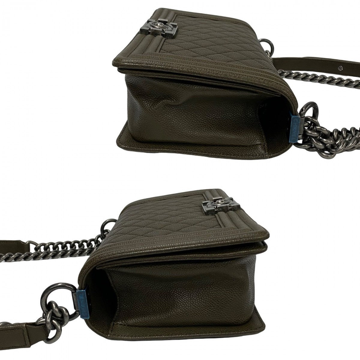 CHANEL Shoulder Bag leather khaki Boy chanel