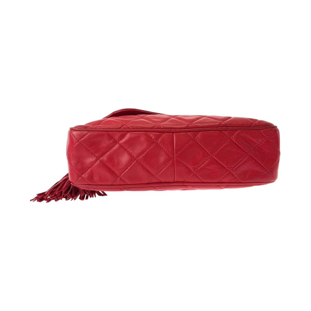 CHANEL Shoulder Bag leather Red Gold Metal ChainShoulder Bag Shoulder Matrasse COCO Mark Tassel Fringe Women Used Authentic