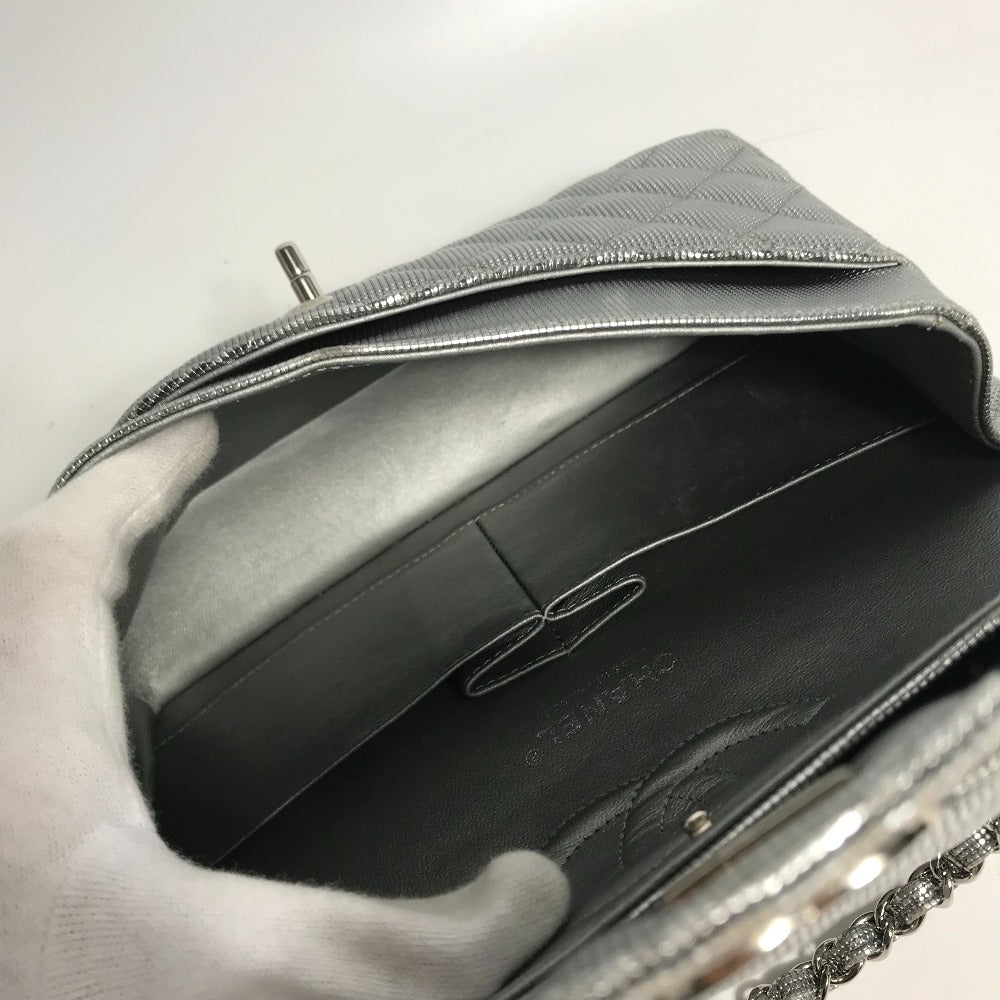CHANEL Shoulder Bag leather Silver COCO Mark CC Matrasse 25 Women Used Authentic