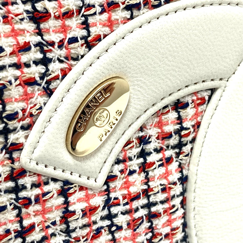 CHANEL Shoulder Bag Leather, Tweed White x red CC COCO Mark flap pochette Women Used Authentic