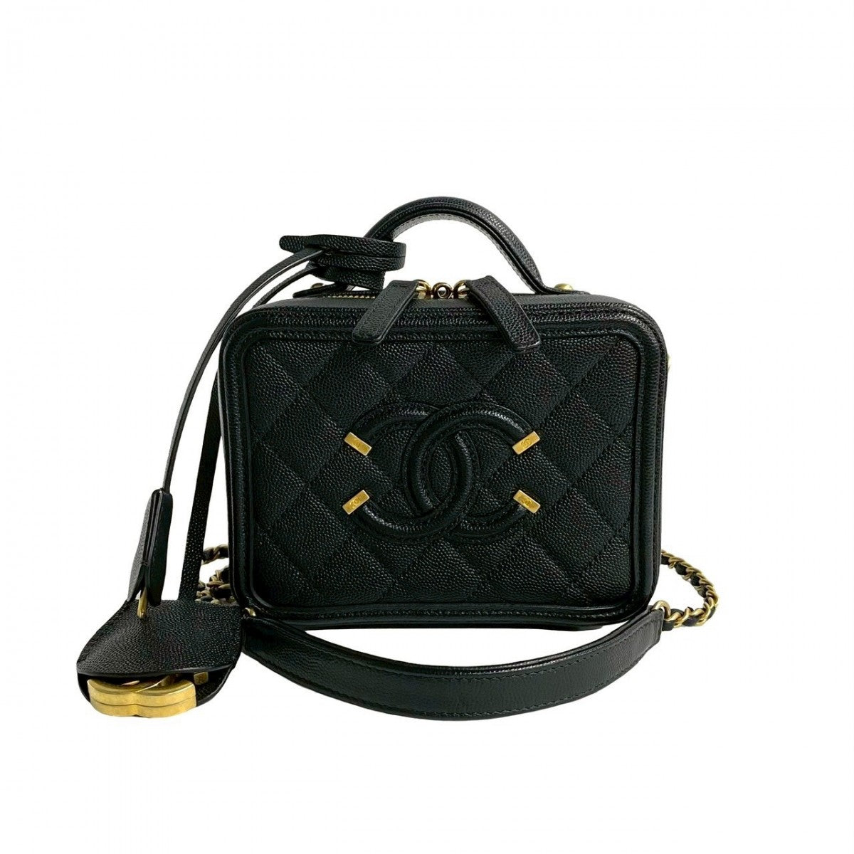 CHANEL Shoulder Bag Matt caviar skin black CC Figley