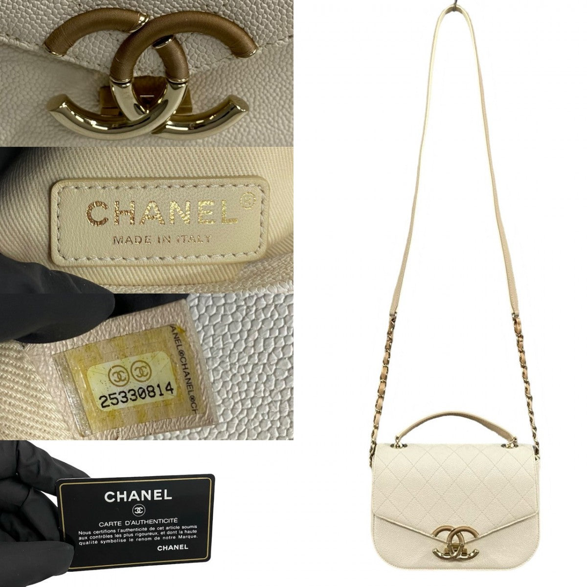 CHANEL Shoulder Bag Matt caviar skin white Matrasse