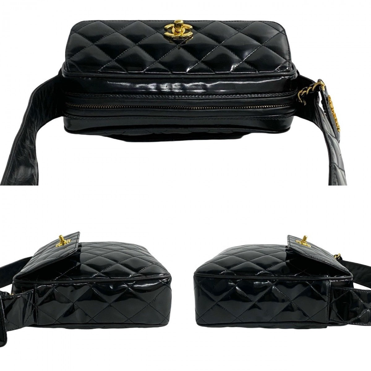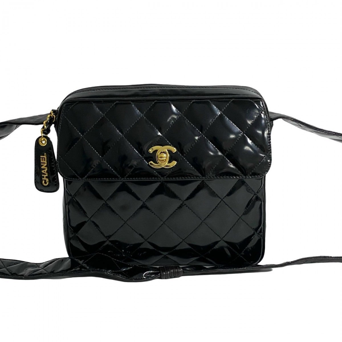 CHANEL Shoulder Bag Patent leather black Matrasse
