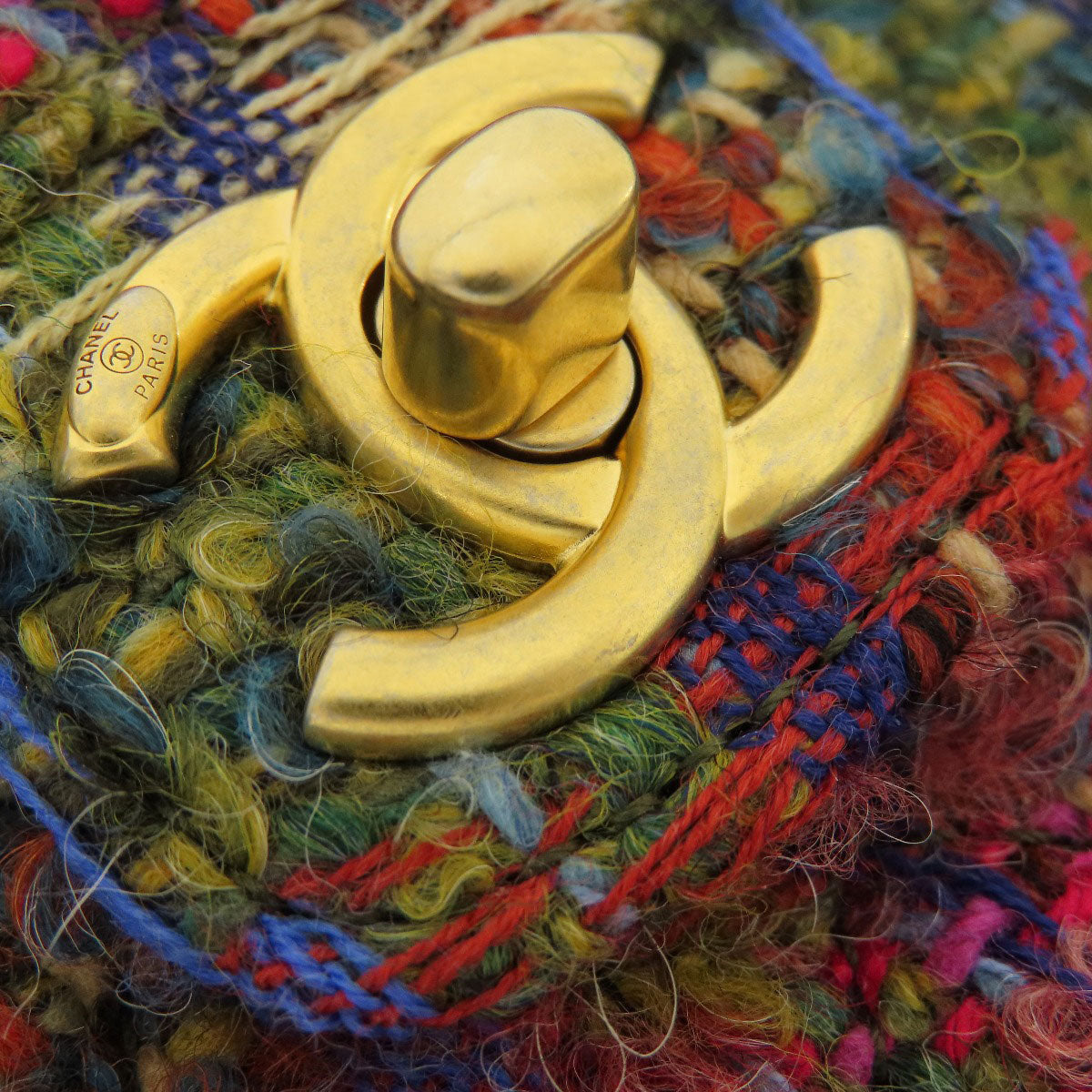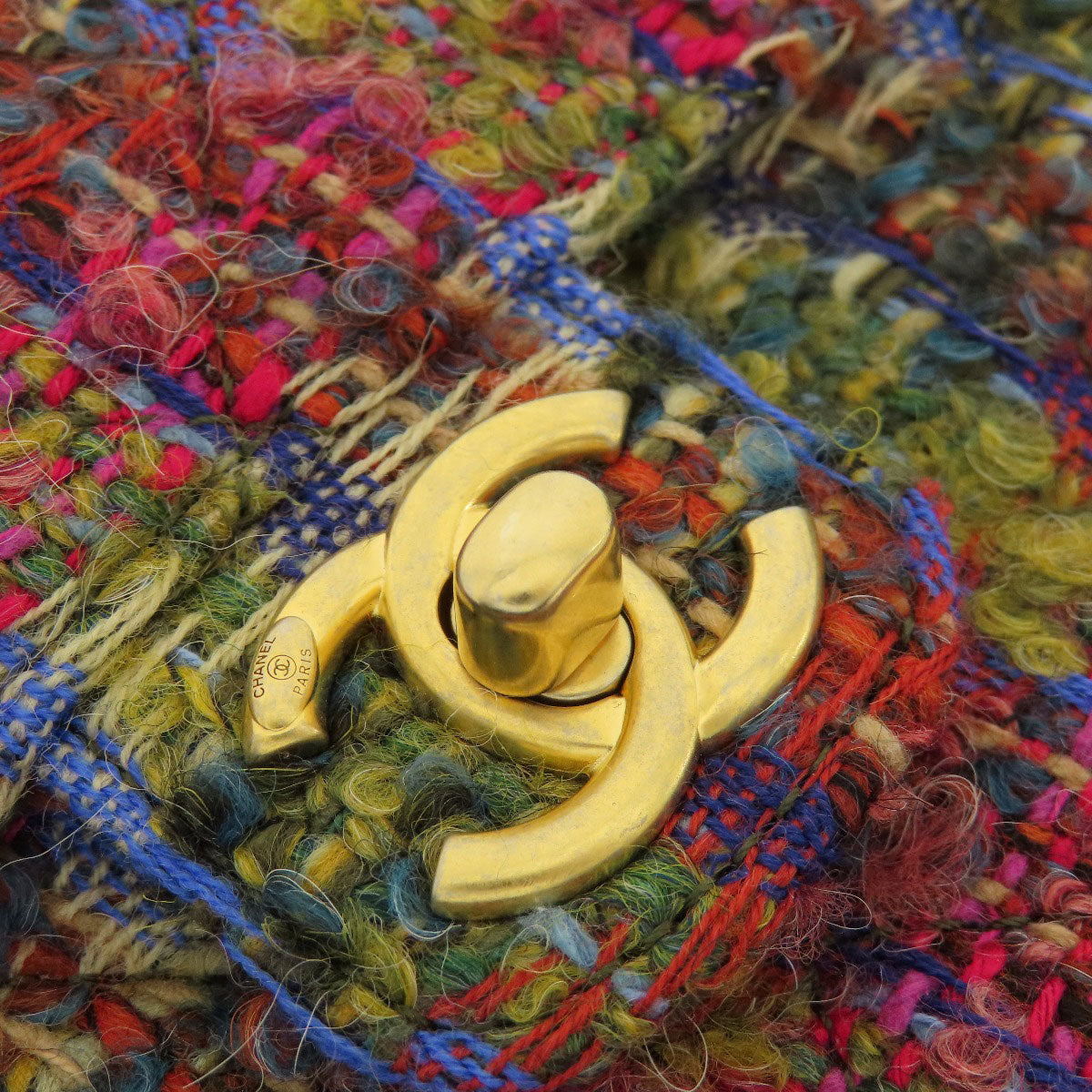 CHANEL Shoulder Bag Tweed multicolor ChainShoulder COCO Mark Gold Metal Women Used Authentic