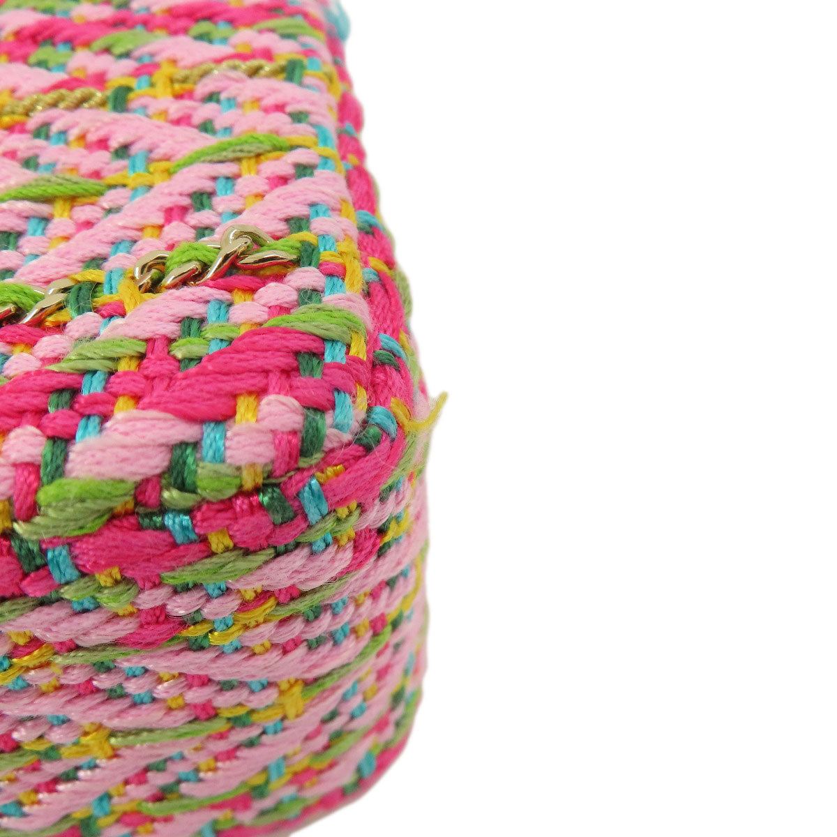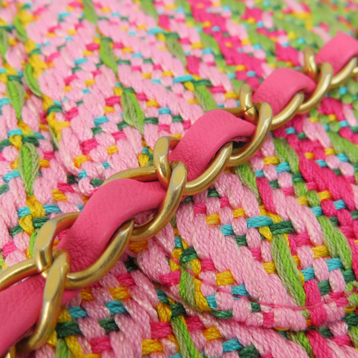 CHANEL Shoulder Bag Tweed pink ChainShoulder COCO Mark Gold Metal Women Used Authentic