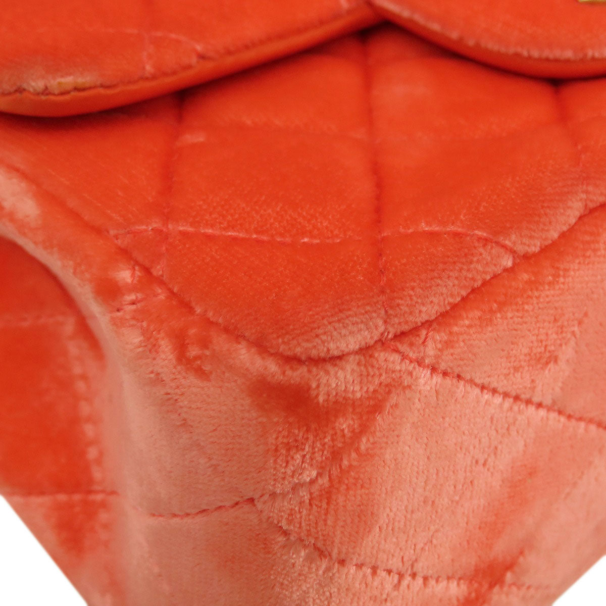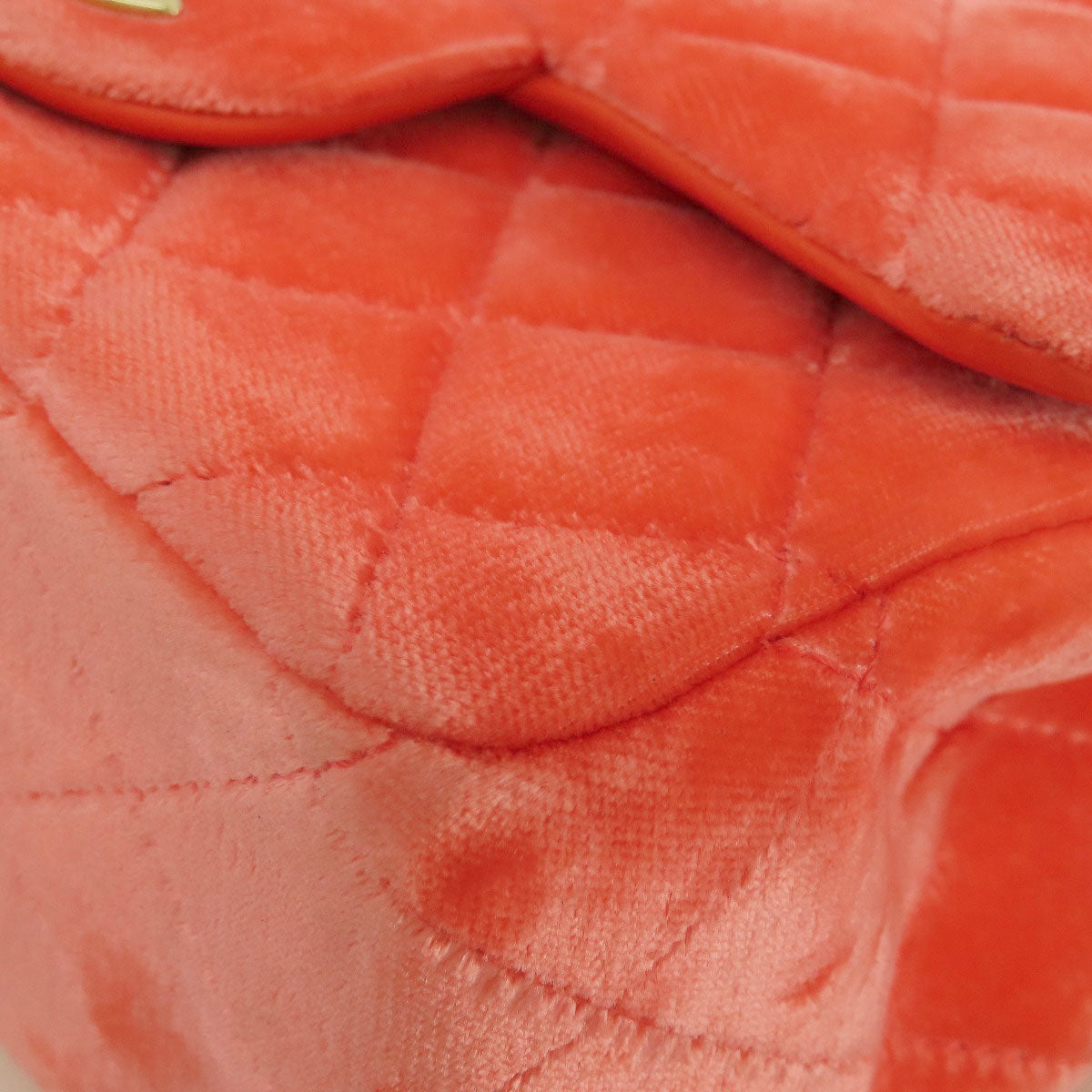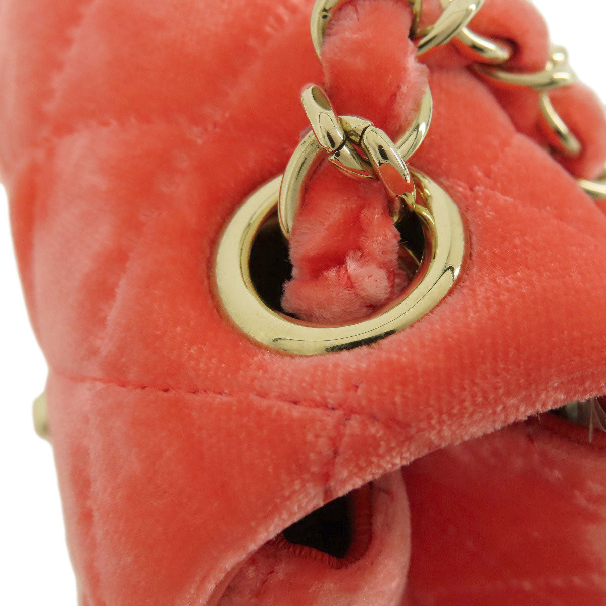 CHANEL Shoulder Bag Velor Red Mini Matelasse COCO Mark Gold Metal