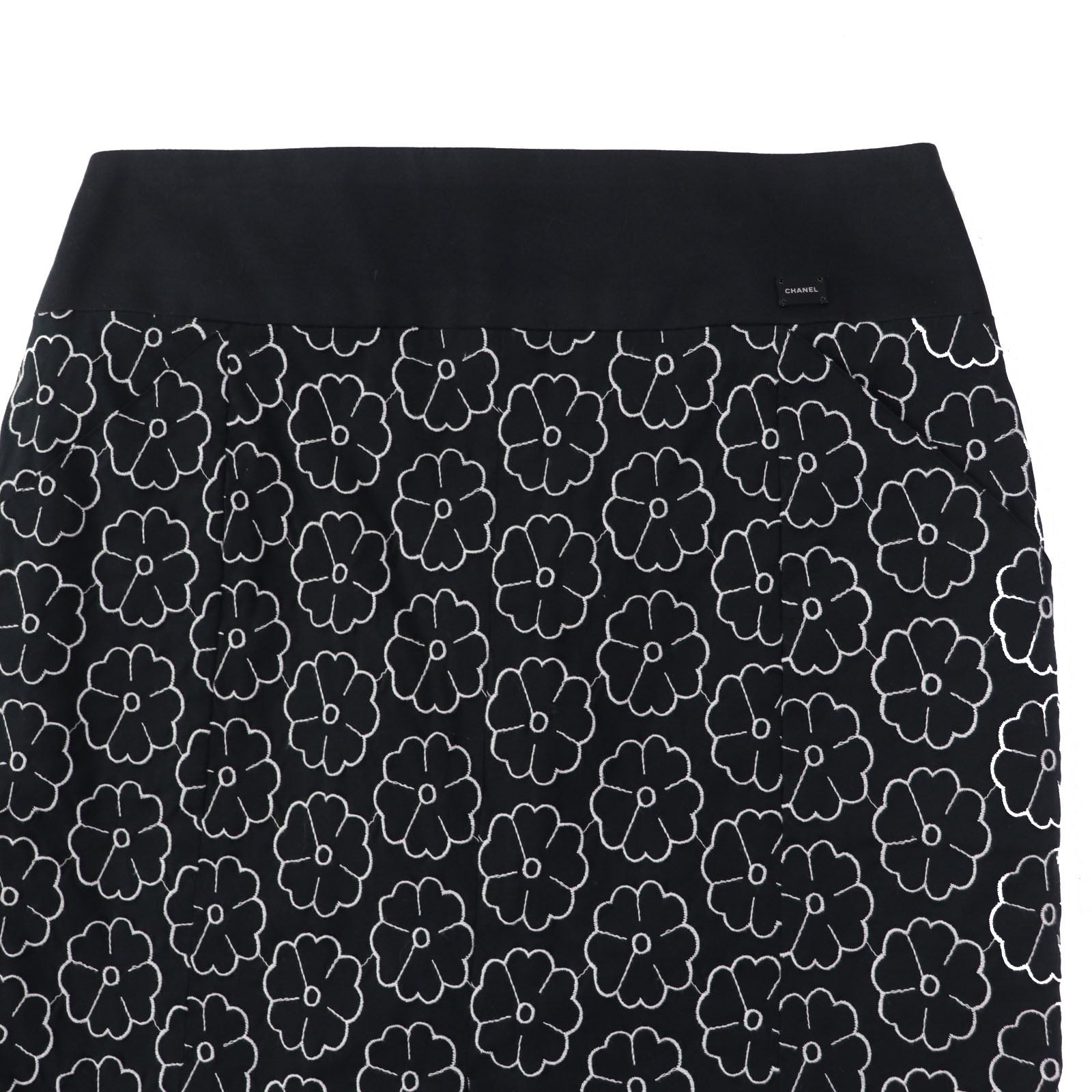 CHANEL skirt 04P P22950 Outer material: 78% cotton, Outer material: 17% nylon, Outer material: 5% elastane (polyurethane), Part: 100% cotton Black White Women 36 Used Authentic