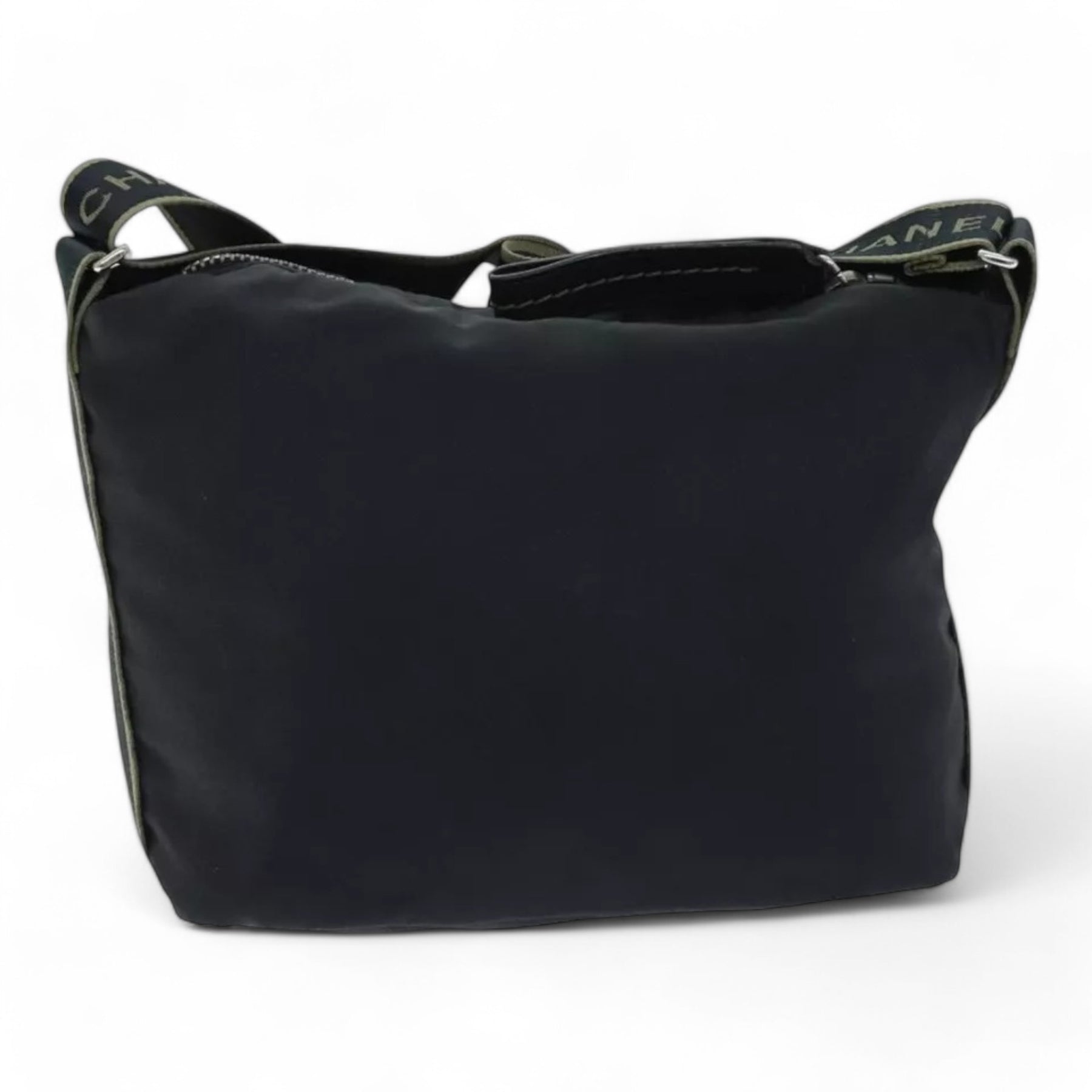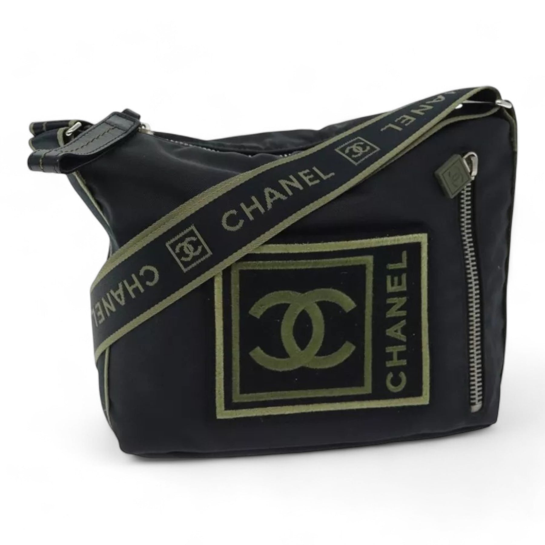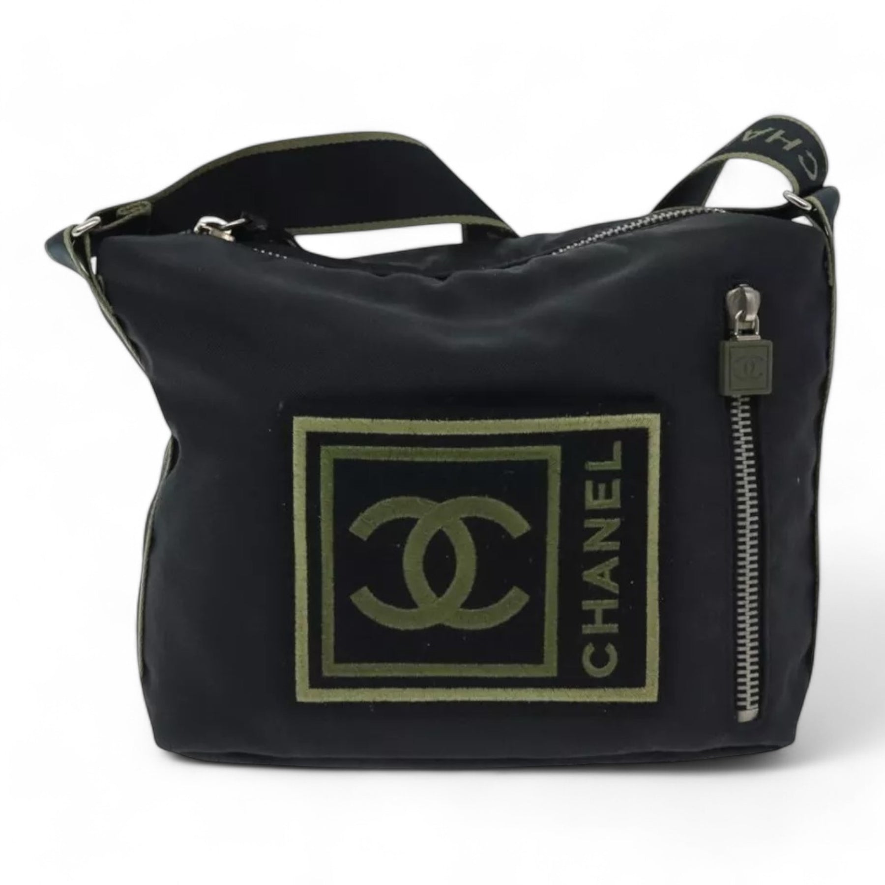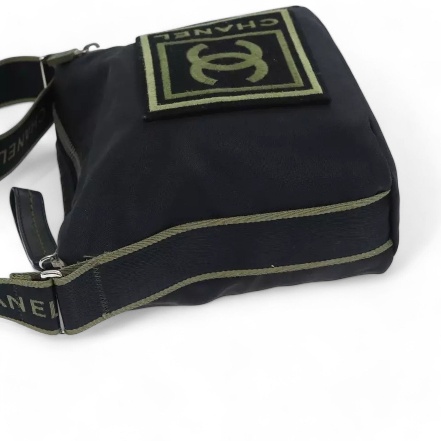 Chanel Sports Coco Mark Shoulder Bag Nylon Black Silver Vintage Crossbody Purse
