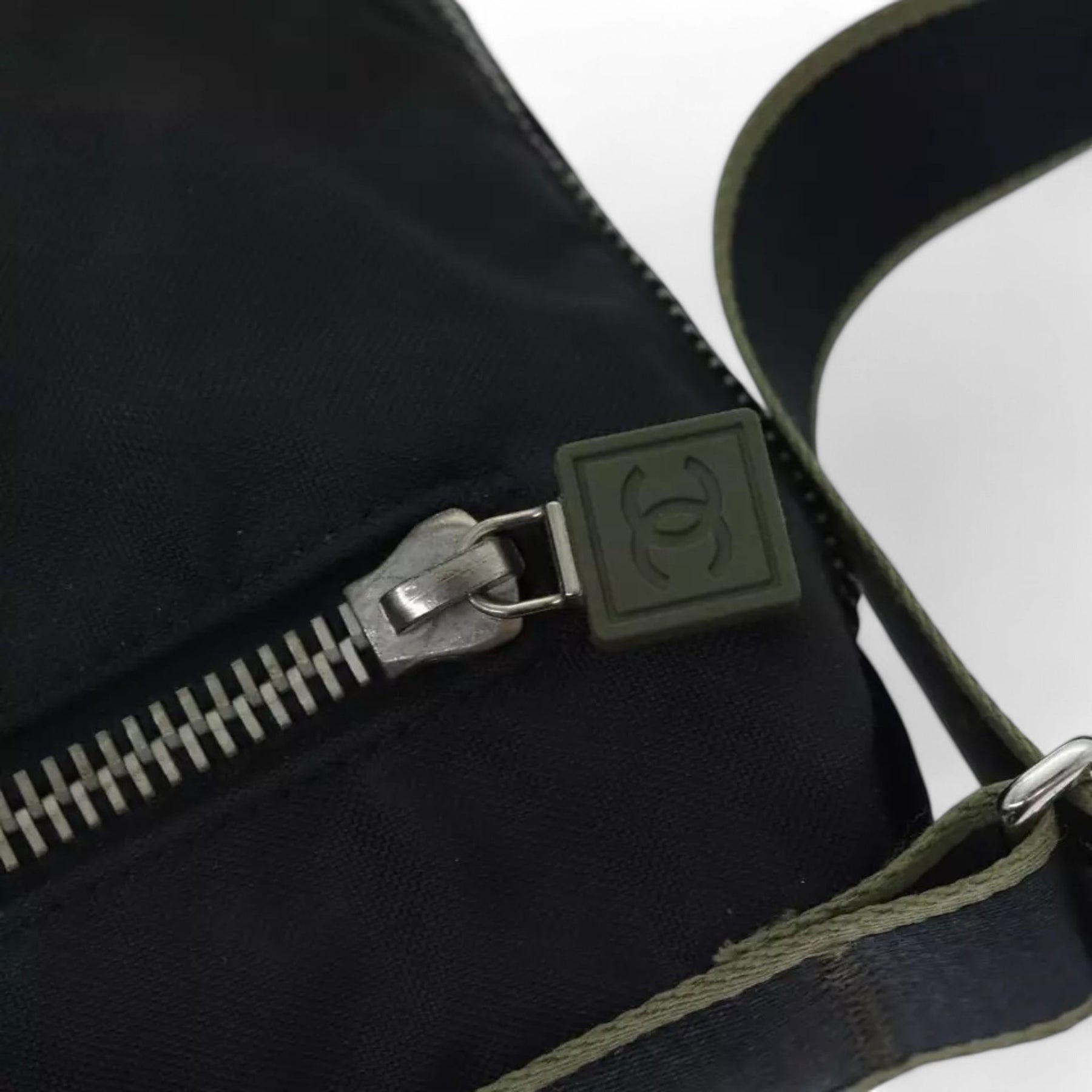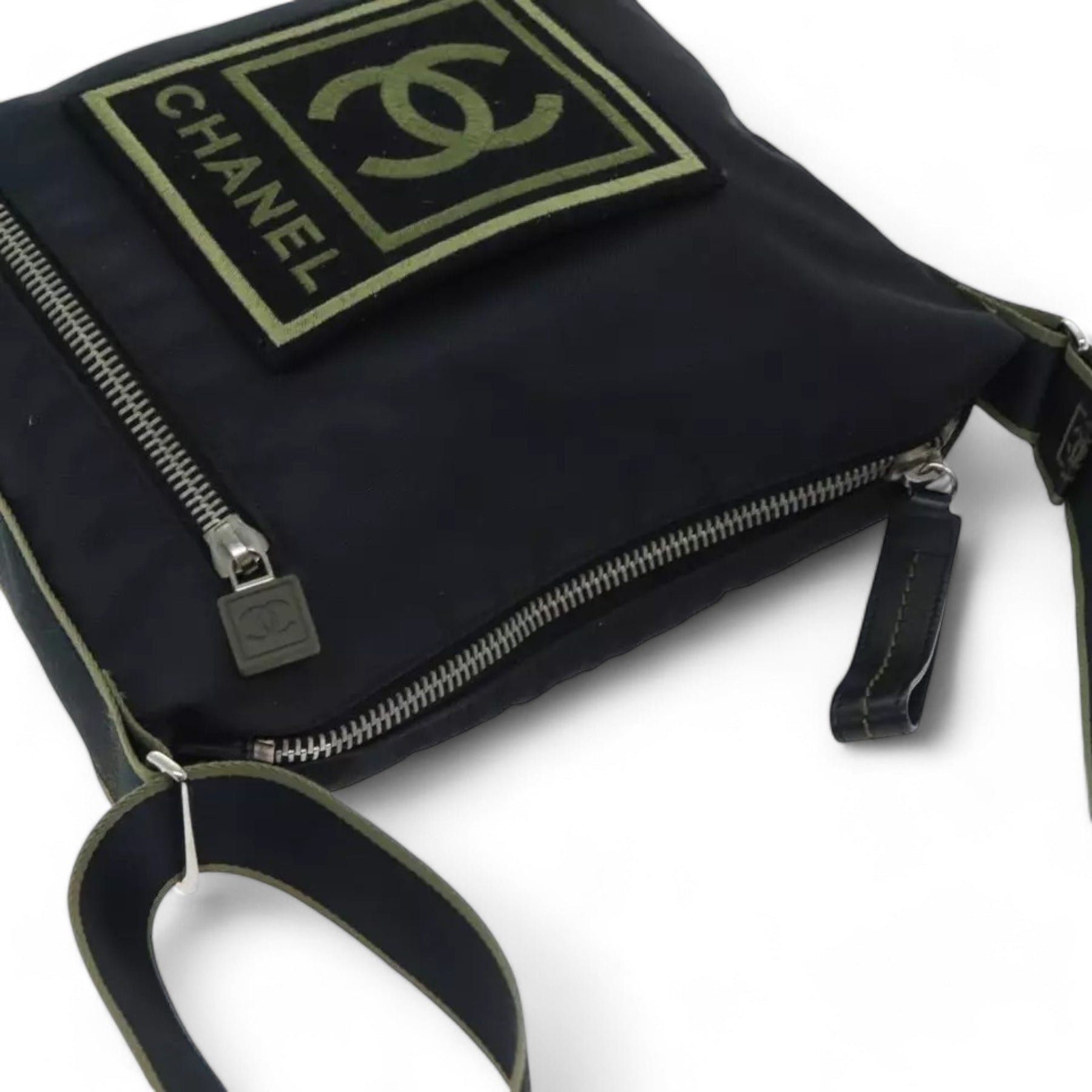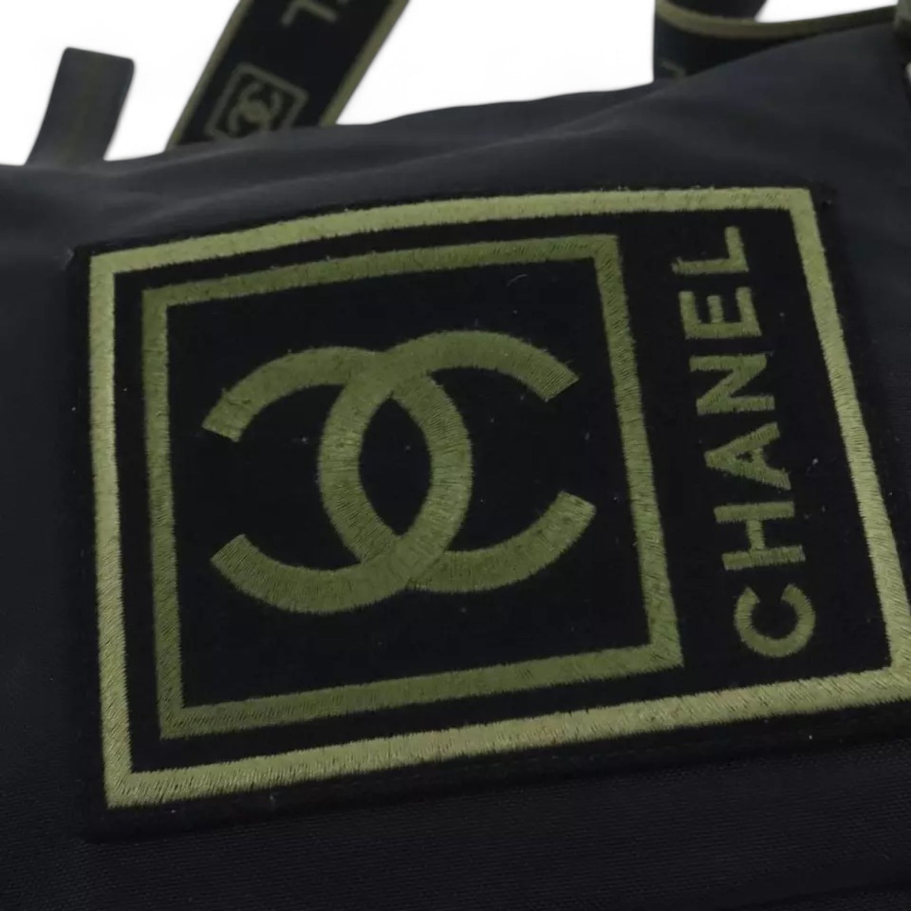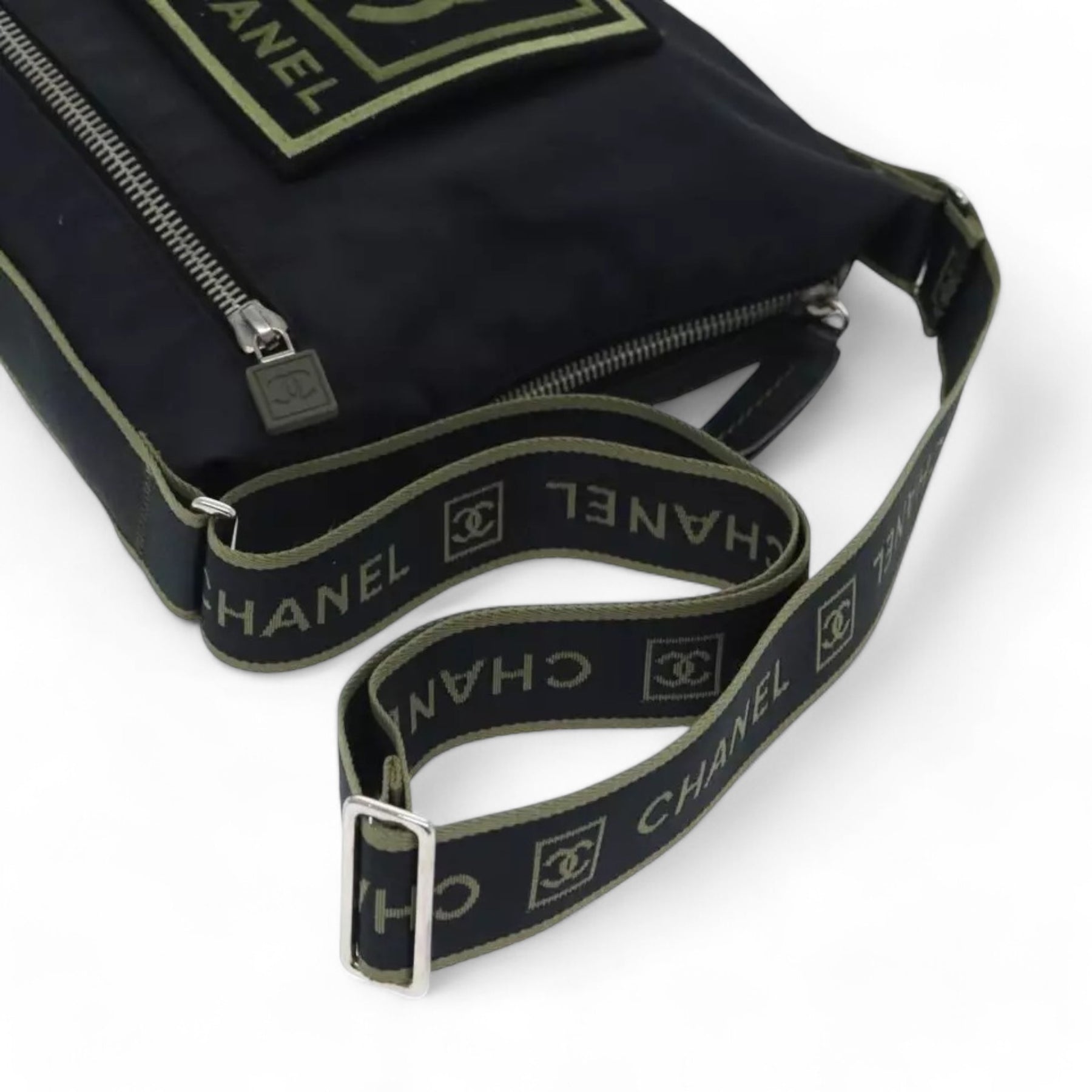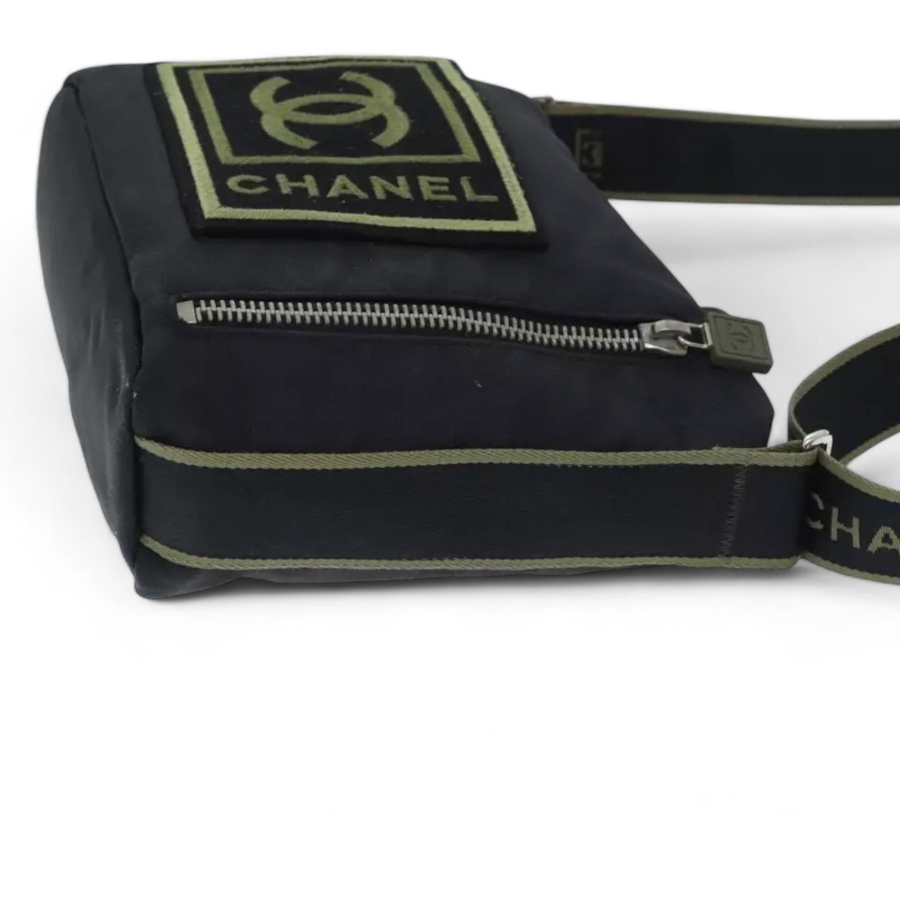 Chanel Sports Coco Mark Shoulder Bag Nylon Black Silver Vintage Crossbody Purse