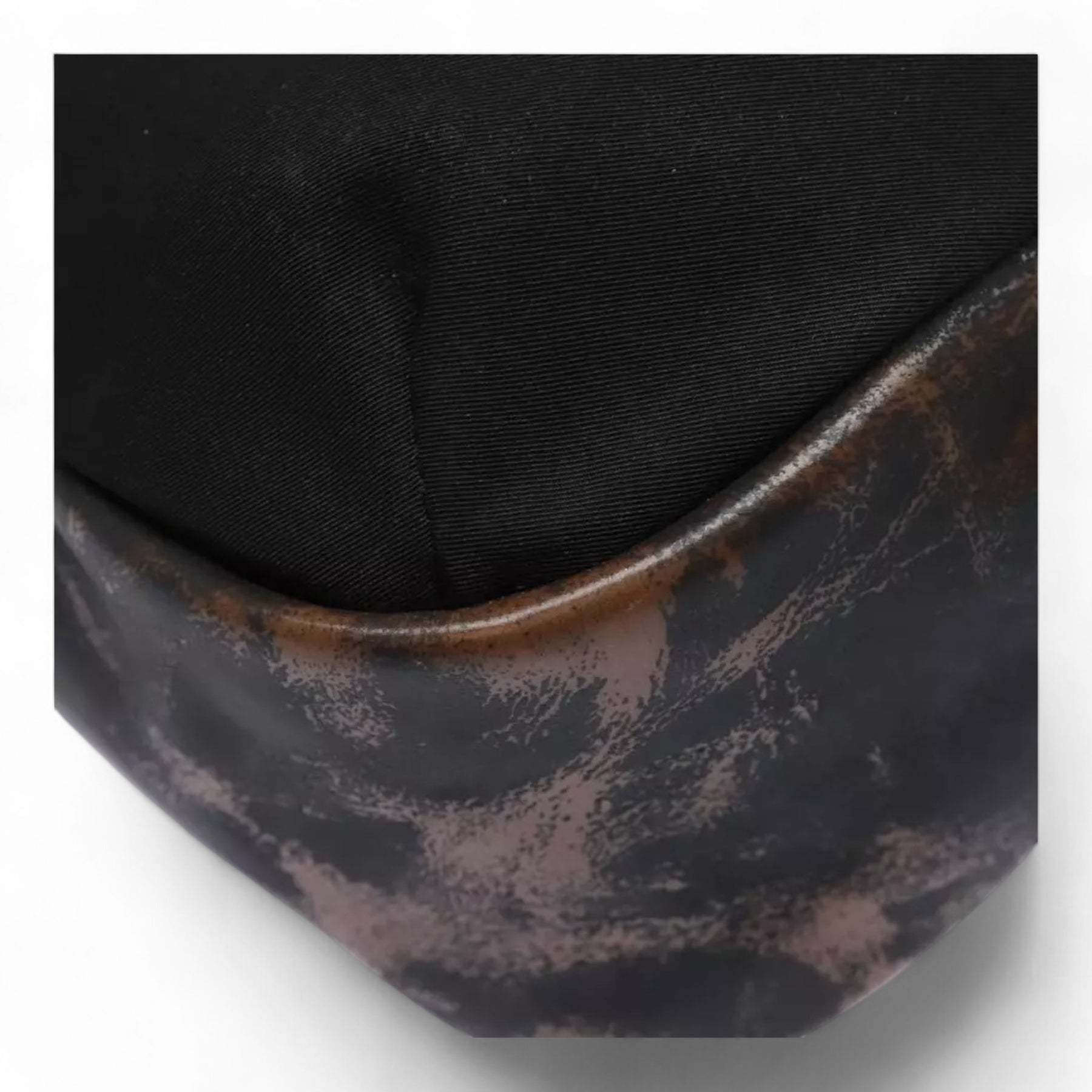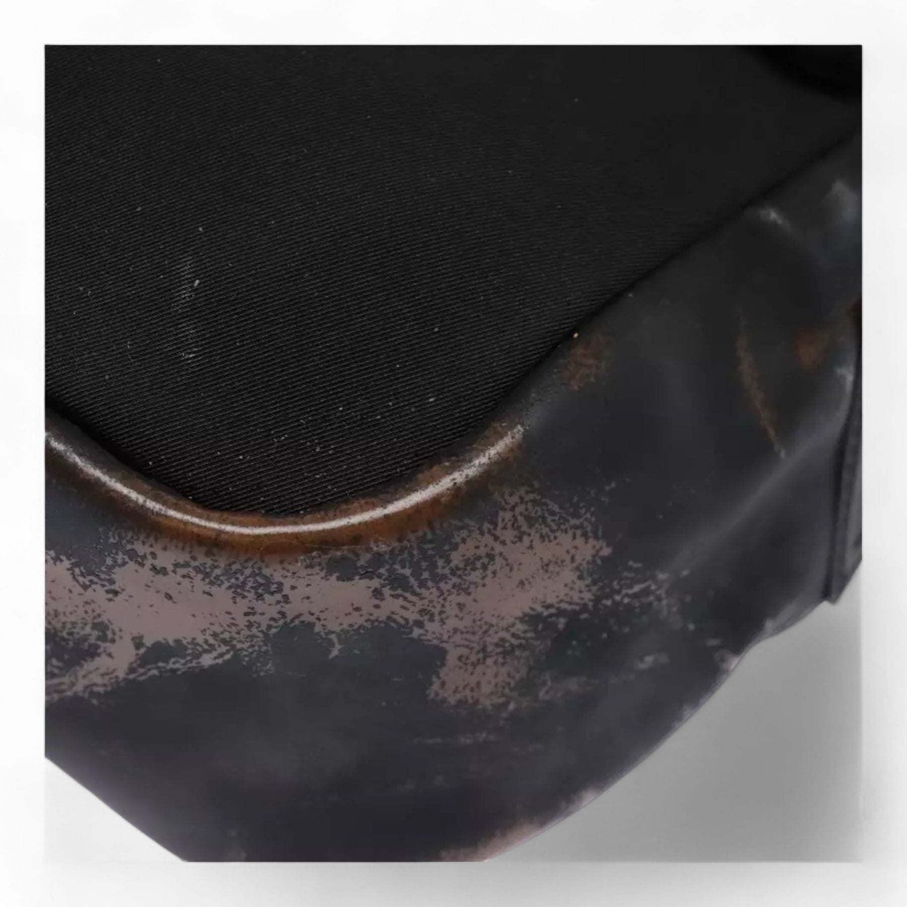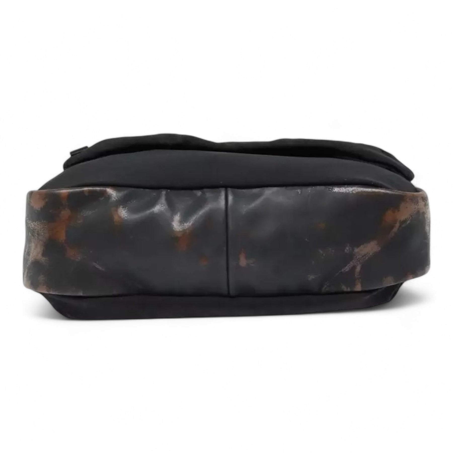 Condition - out of shape, rubbing, sticky surface, leather peeling, shoulder strap rubbing, metal fittings scratches, inside rubbing, pocket partly stained, corner rubbing, storage smell