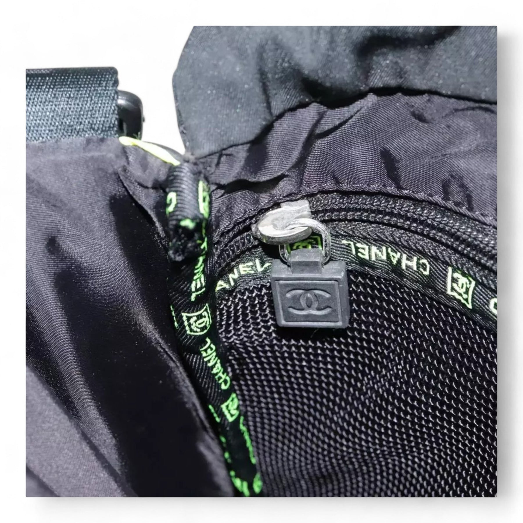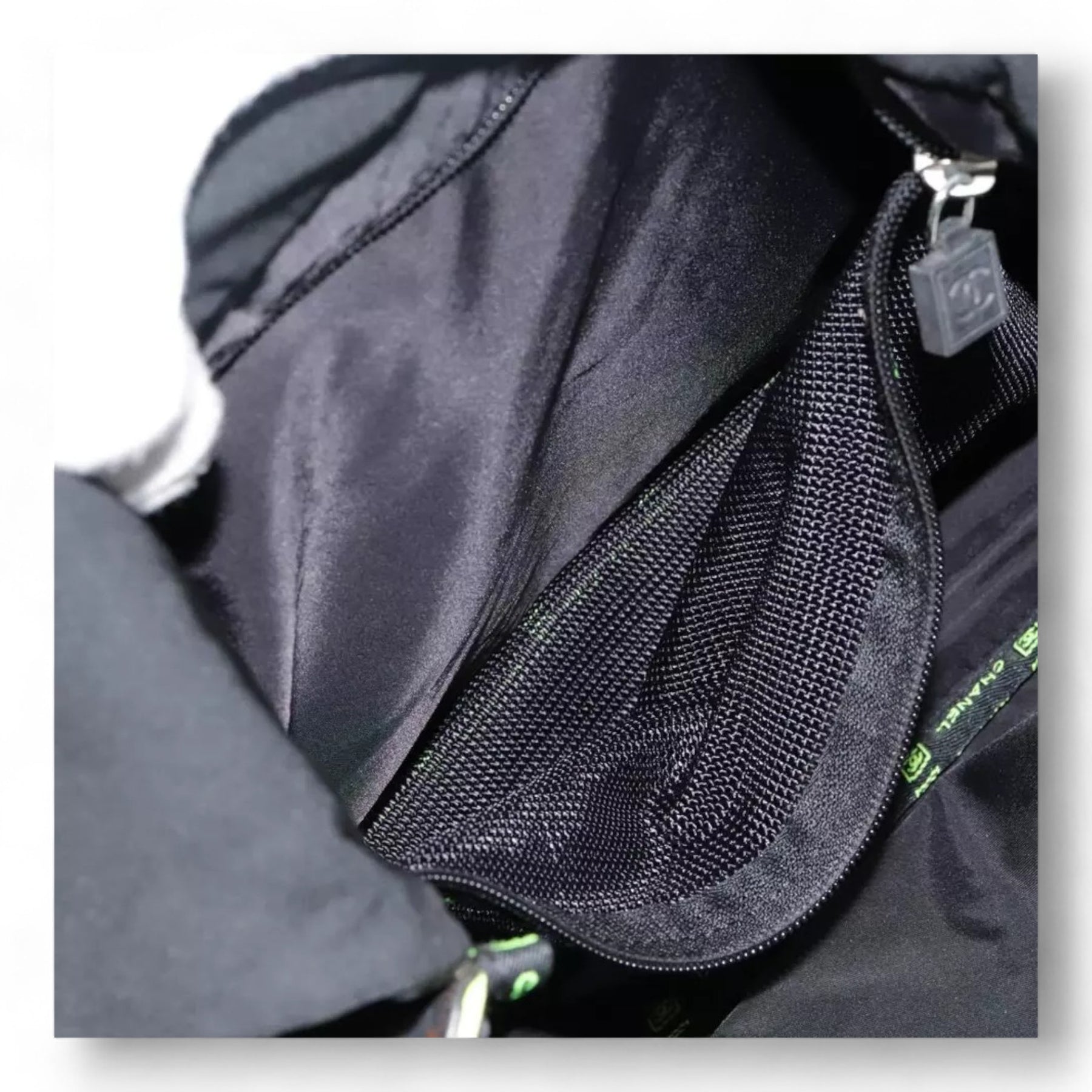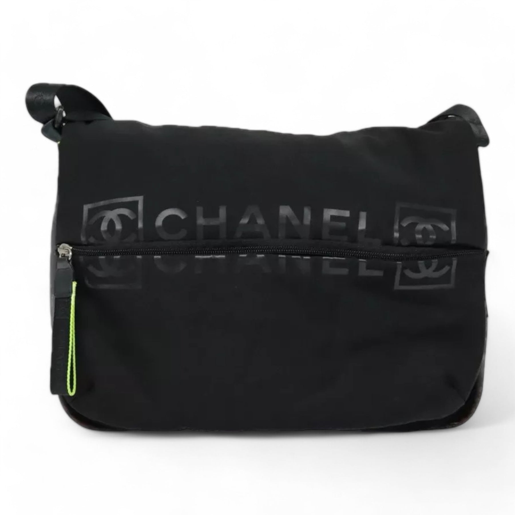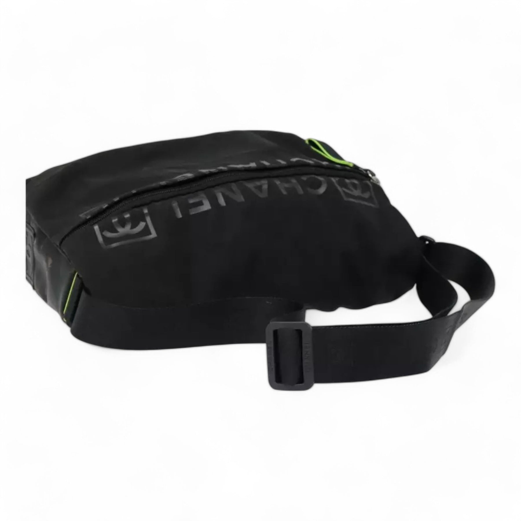 Chanel Sports Shoulder Bag Nylon Black Silver Unisex CC Logo Adjustable Strap