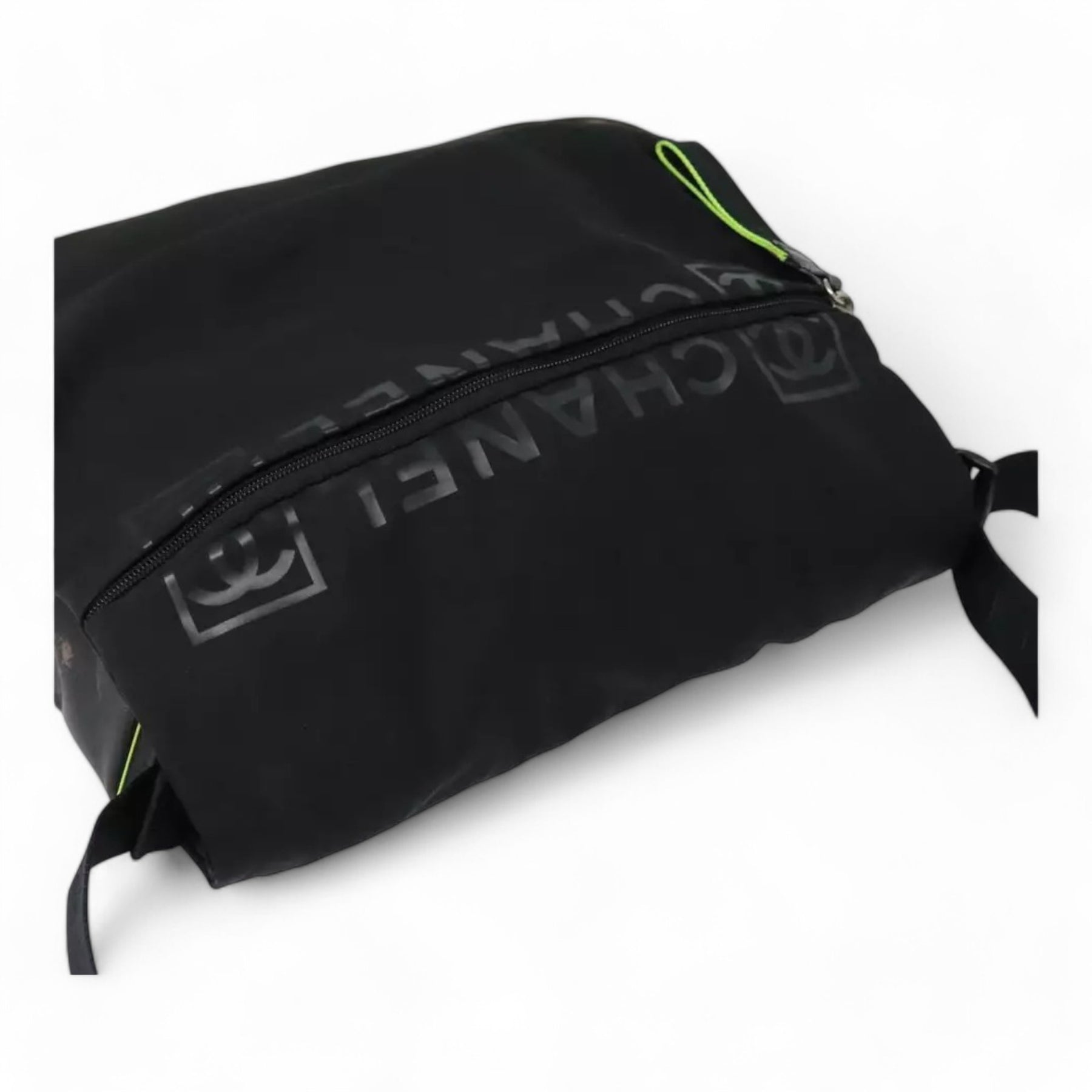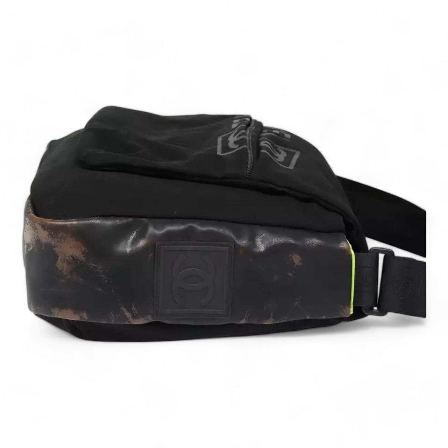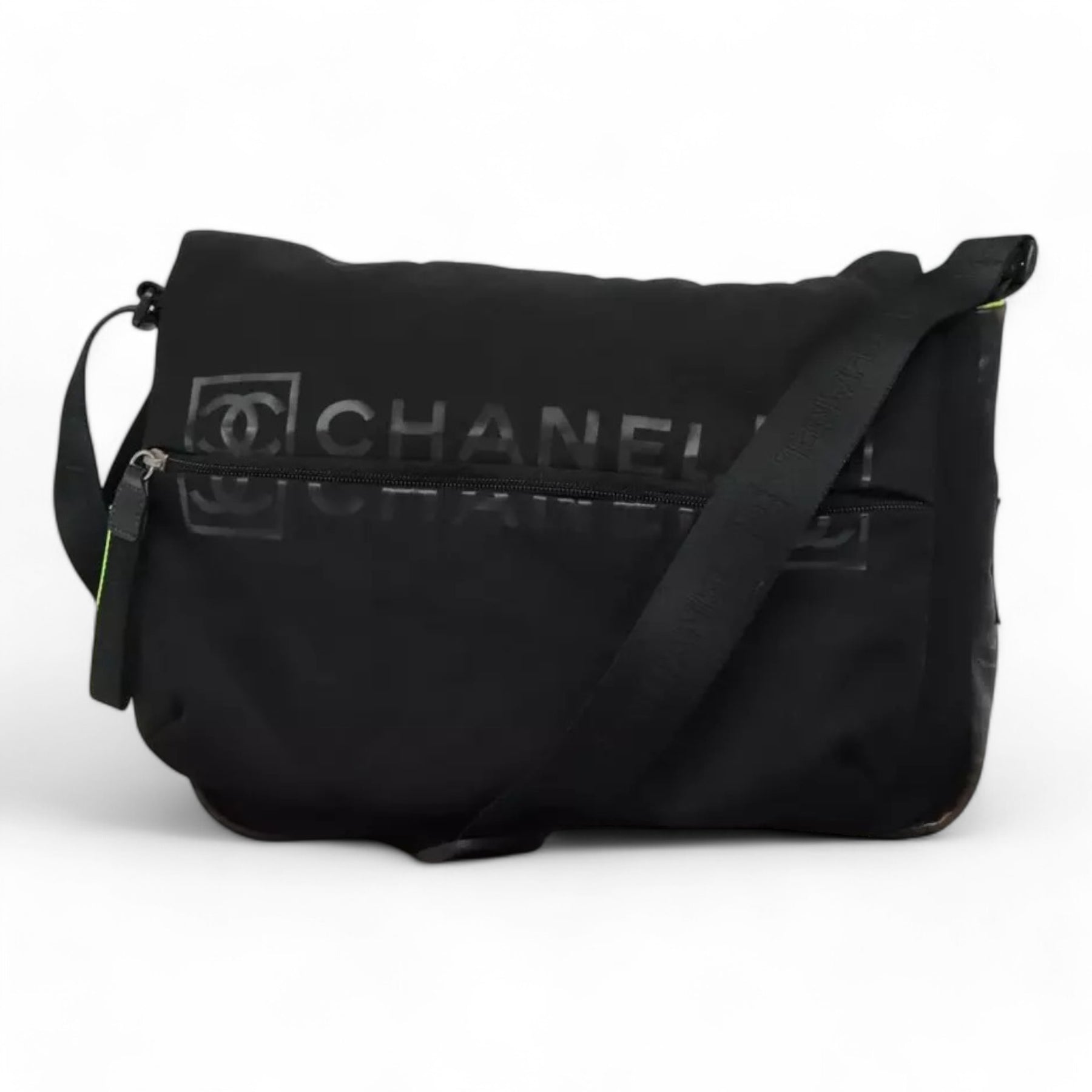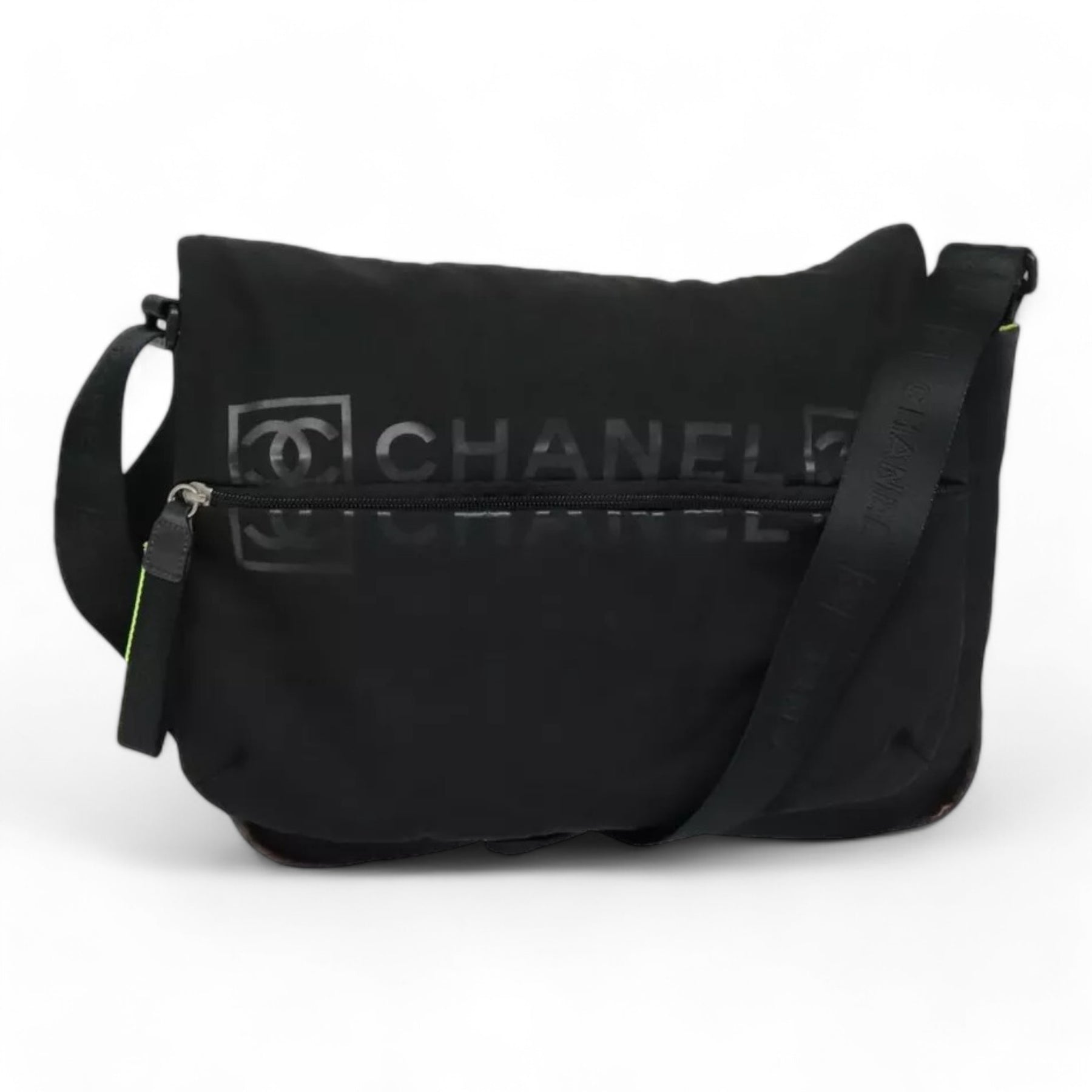 Chanel Sports Shoulder Bag Nylon Black Silver Unisex CC Logo Adjustable Strap