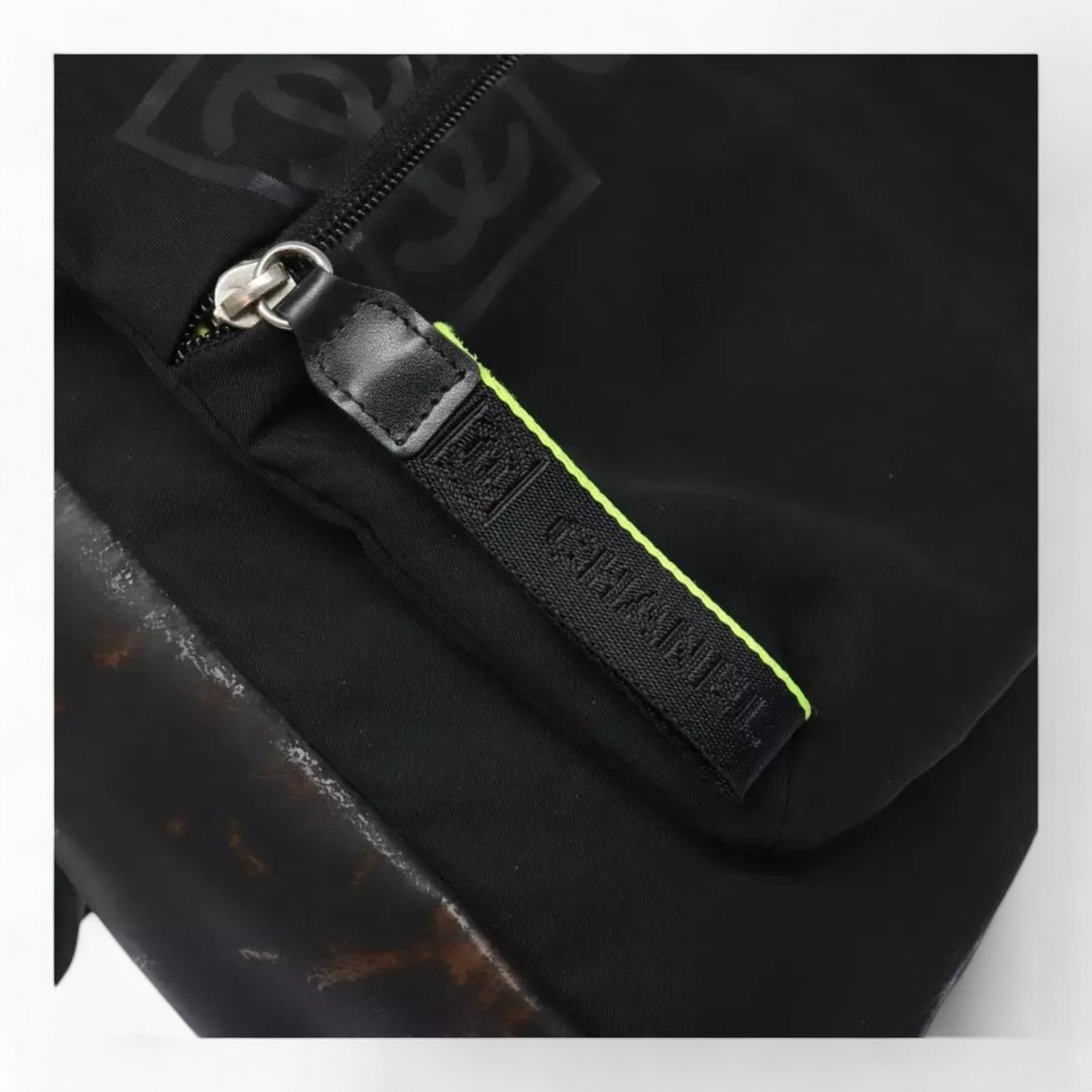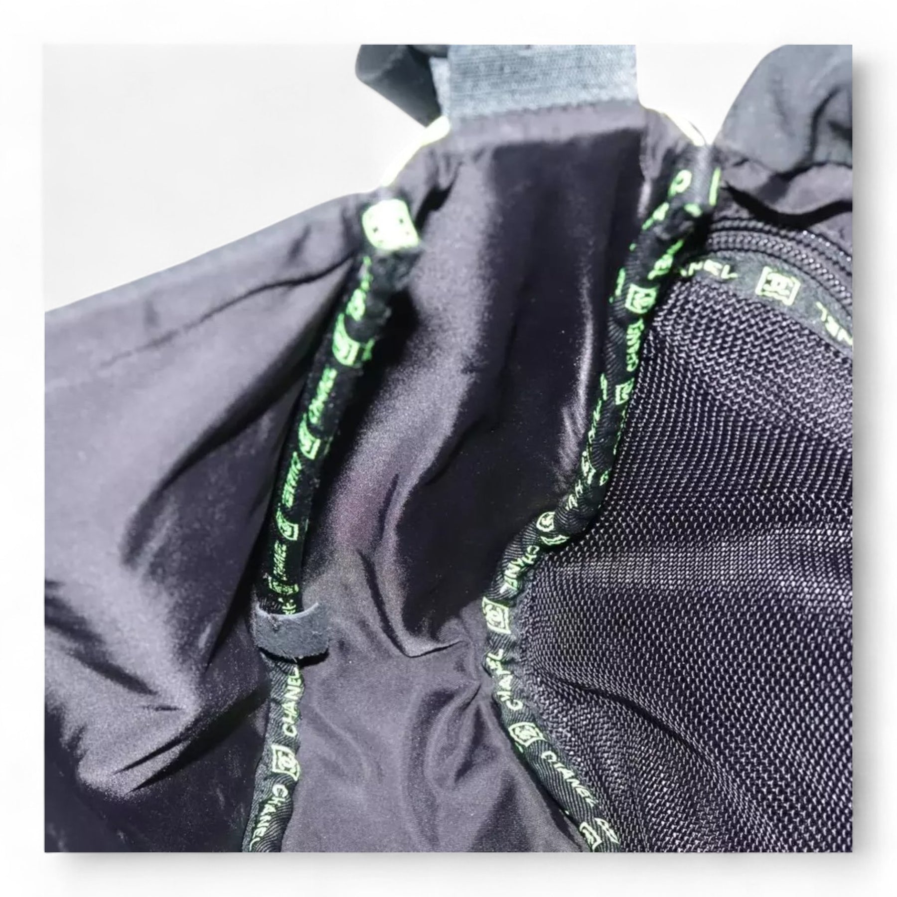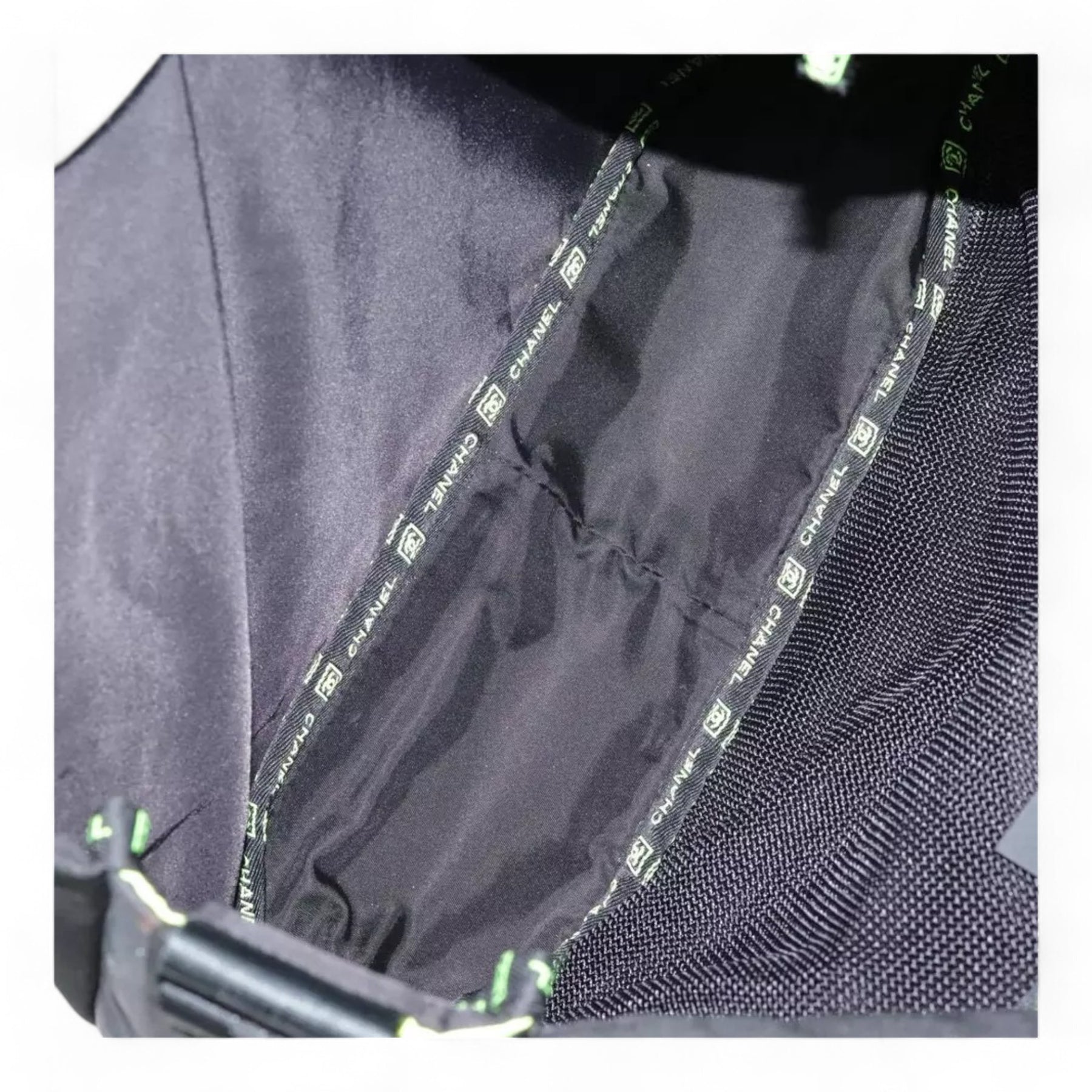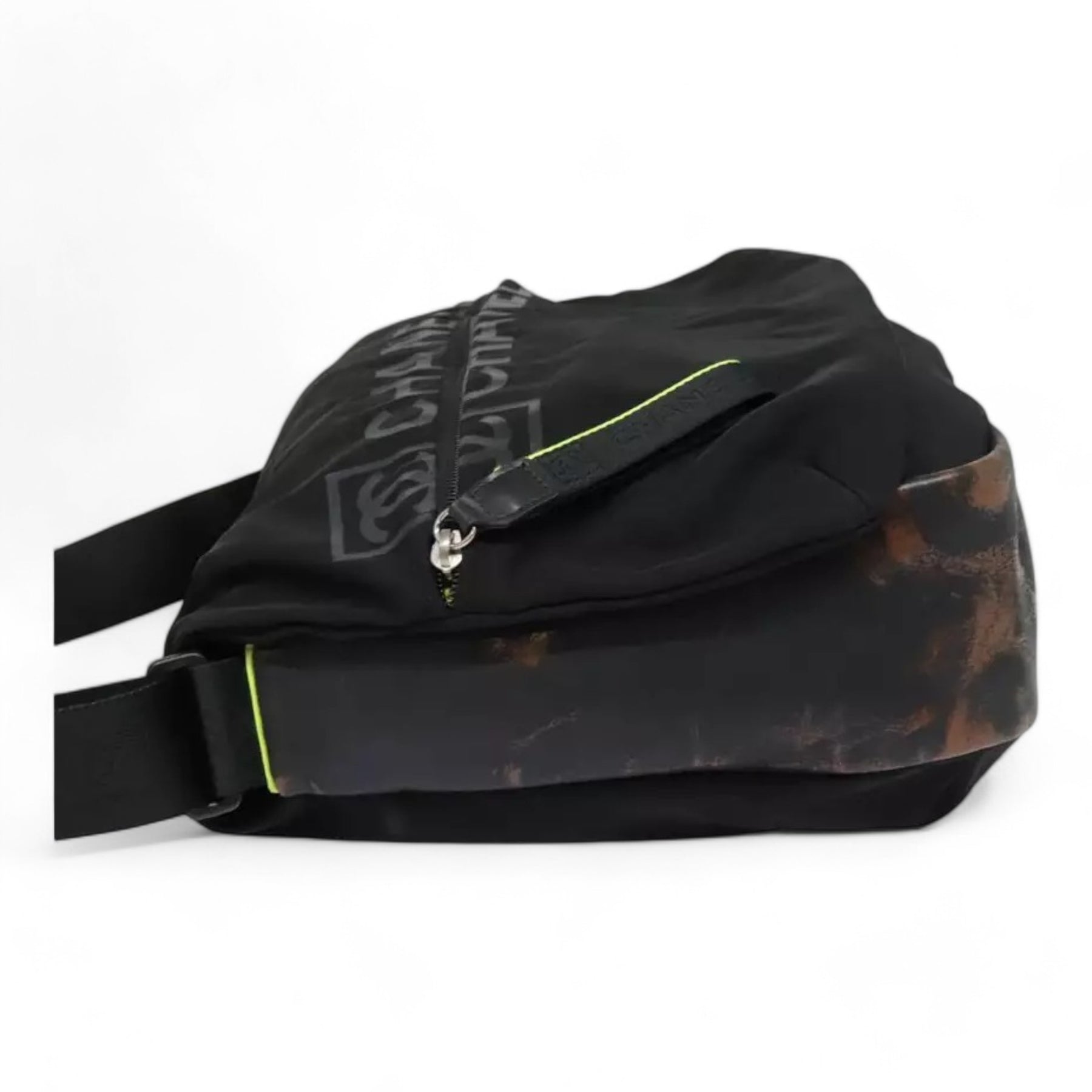 Chanel Sports Shoulder Bag Nylon Black Silver Unisex CC Logo Adjustable Strap