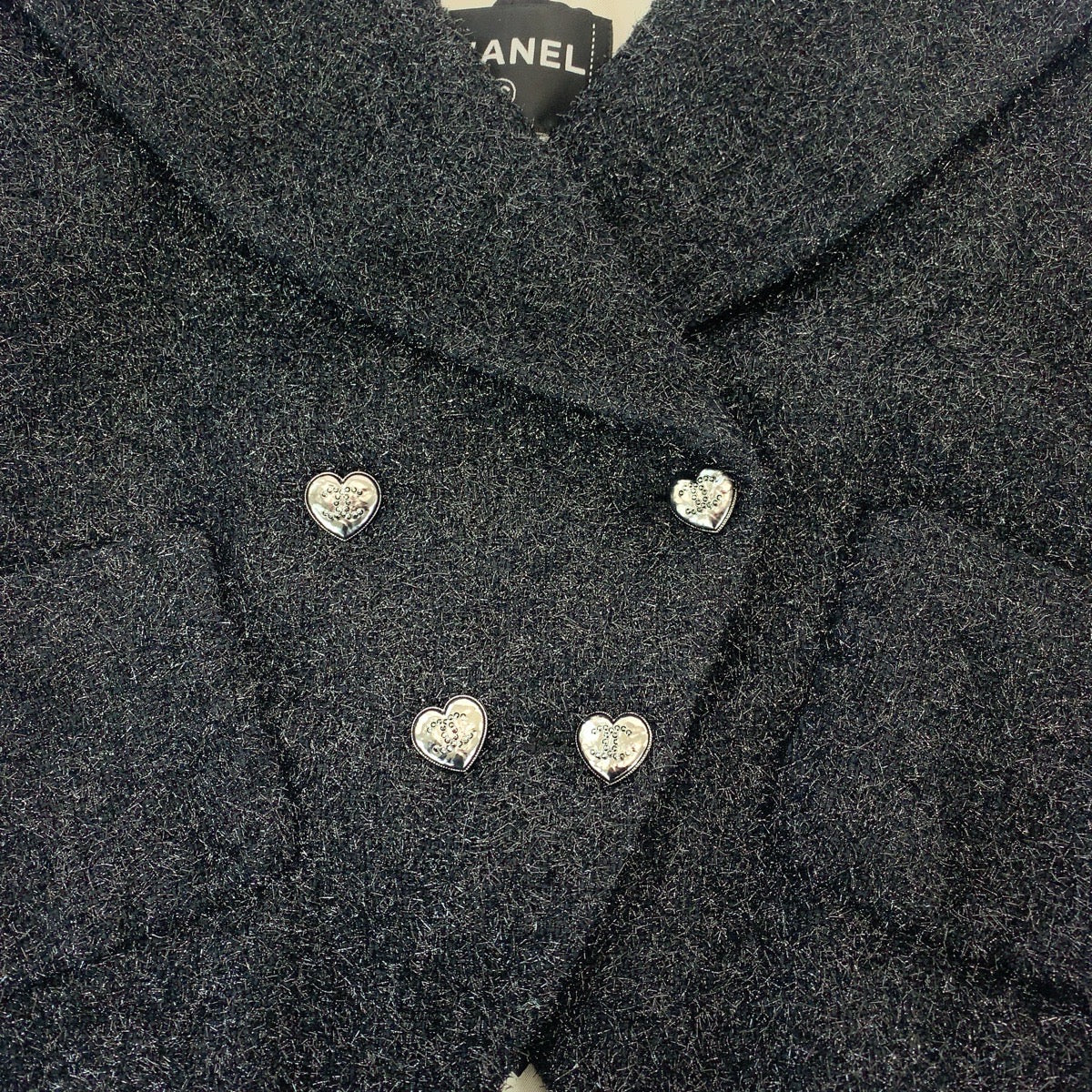 CHANEL tailored jacket P71194V48297 Cotton, Polyester Black Gunmetal Short length tailored jacket Glitter Feather COCO Mark Women 36 Used Authentic