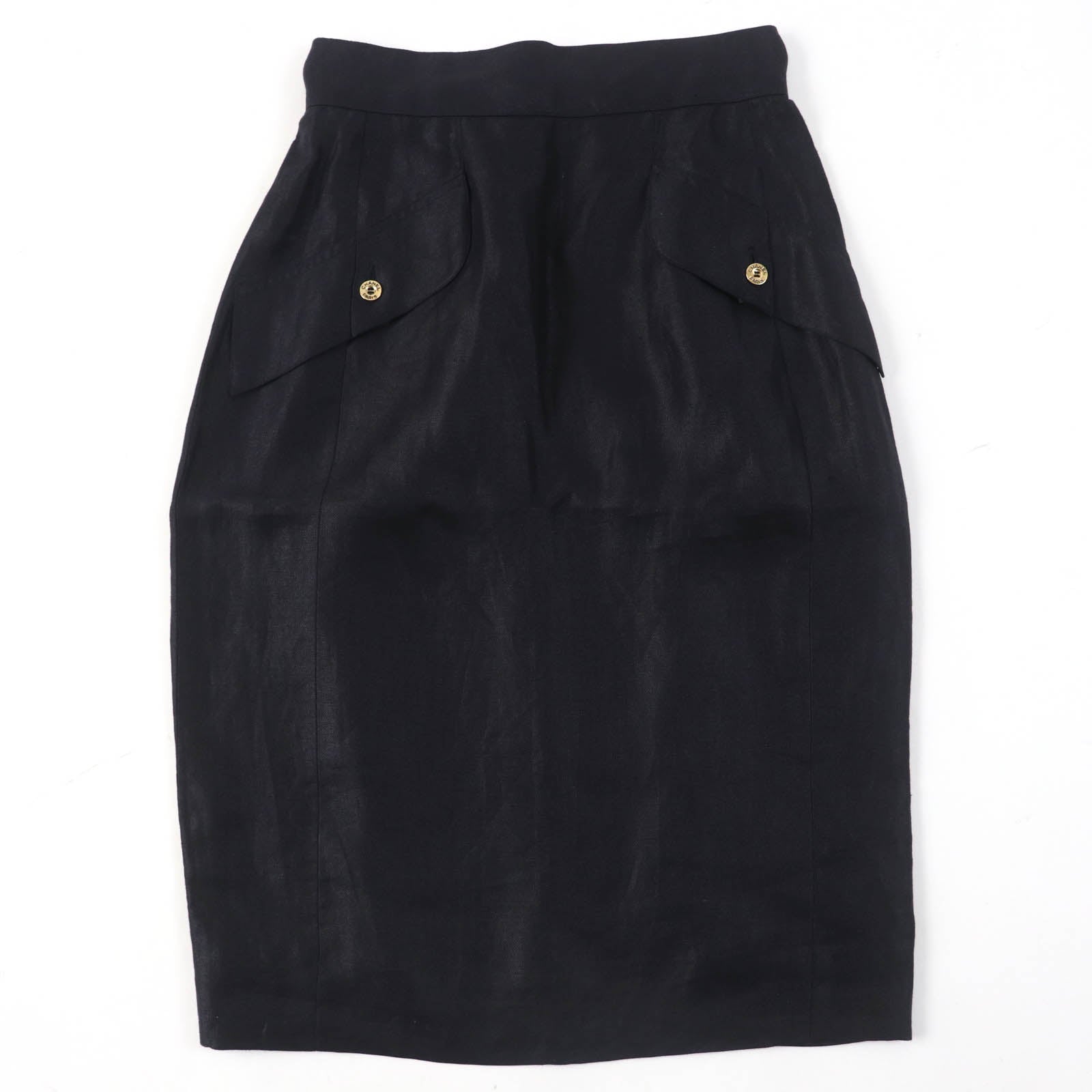 CHANEL Tight Skirt 150466D4 A250078 Main: 100% linen, lining: 100% silk black Women 34 Used Authentic