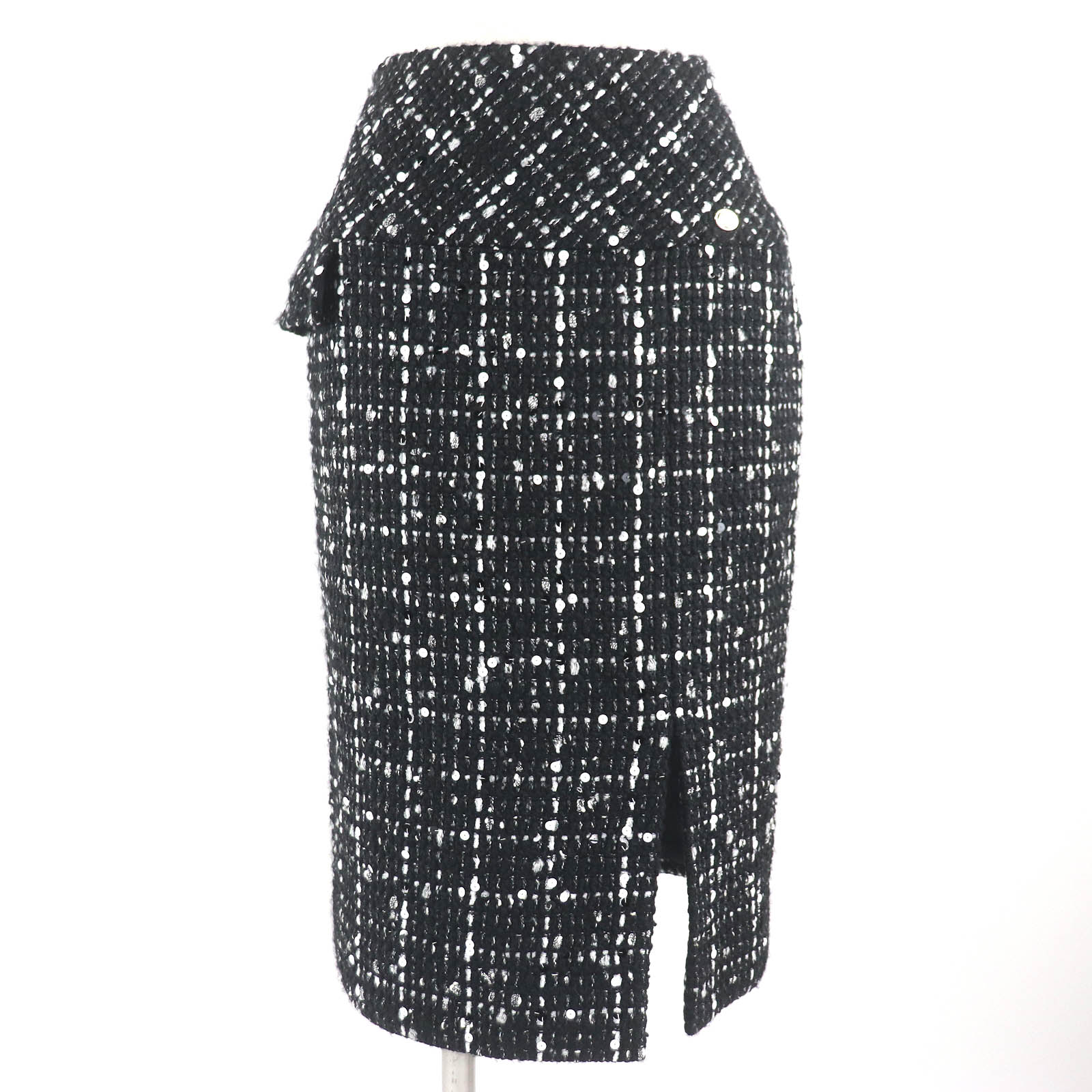 CHANEL Tight Skirt P65335 Outer material: 31% wool, Outer material: 28% acrylic, Outer material: 23% cotton, Outer material: 10% polyamide, Outer material: 8% polyester Black White Women 34 Used Authentic