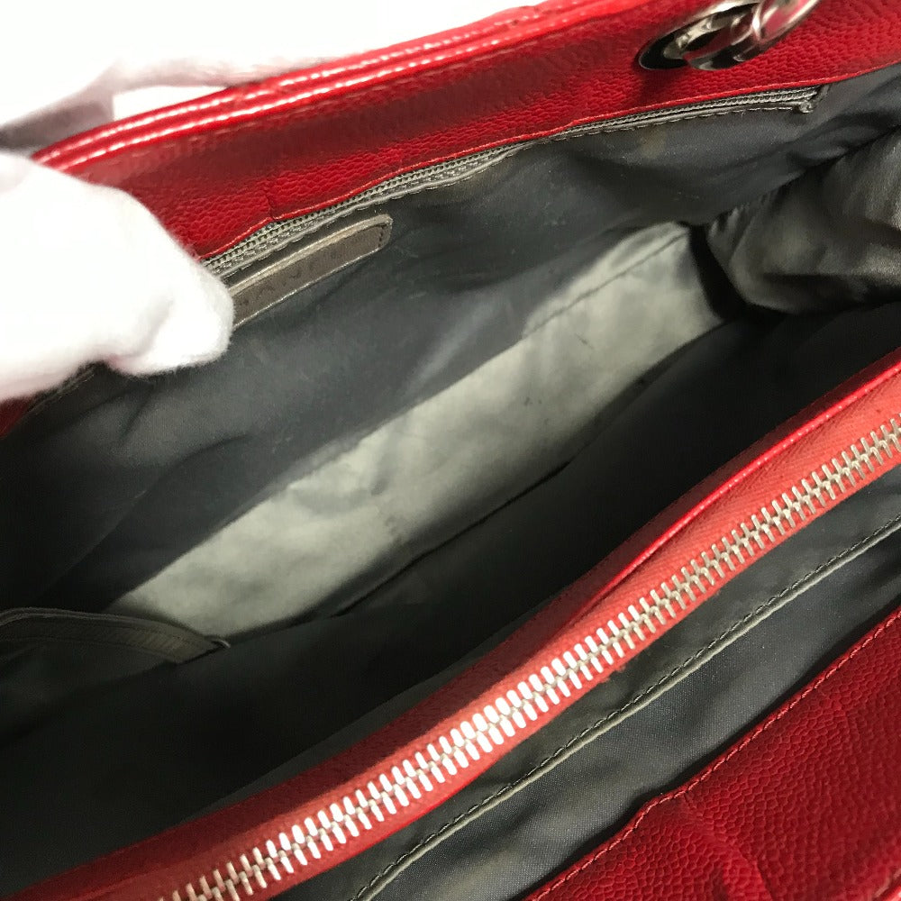 CHANEL Tote Bag A50995 Caviar skin Red CC COCO Mark Shoulder Bag Matelasse quilting Women Used Authentic