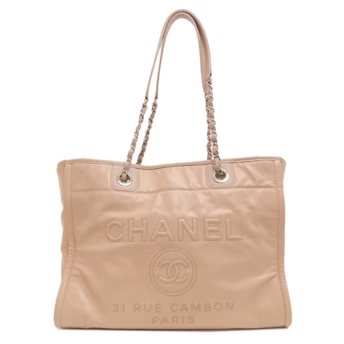 CHANEL Tote Bag Calfskin pink DeauvilleMM SilverMetal