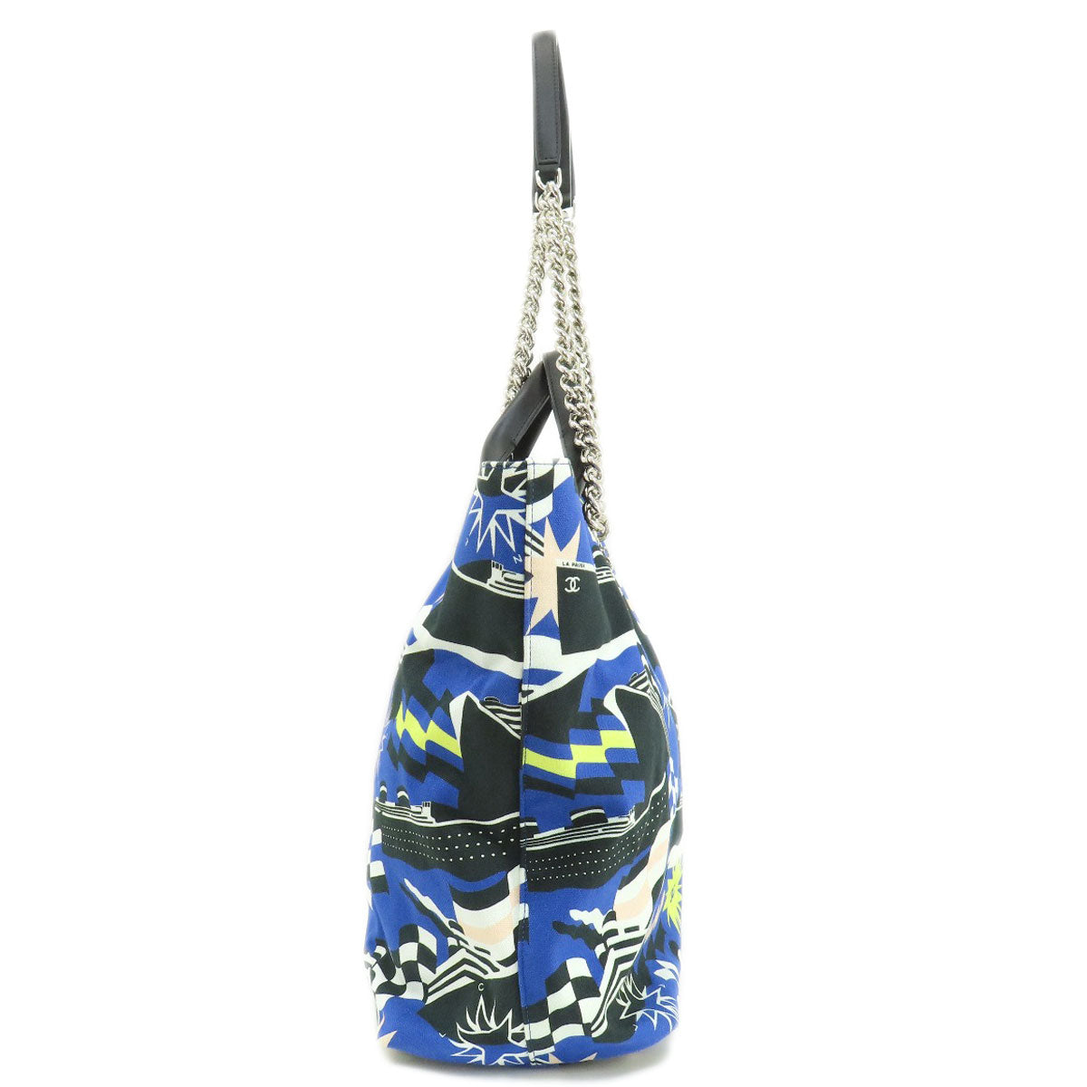 CHANEL Tote Bag canvas blue 2019 Cruise Collection Marine Chain SilverMetal Women Used Authentic