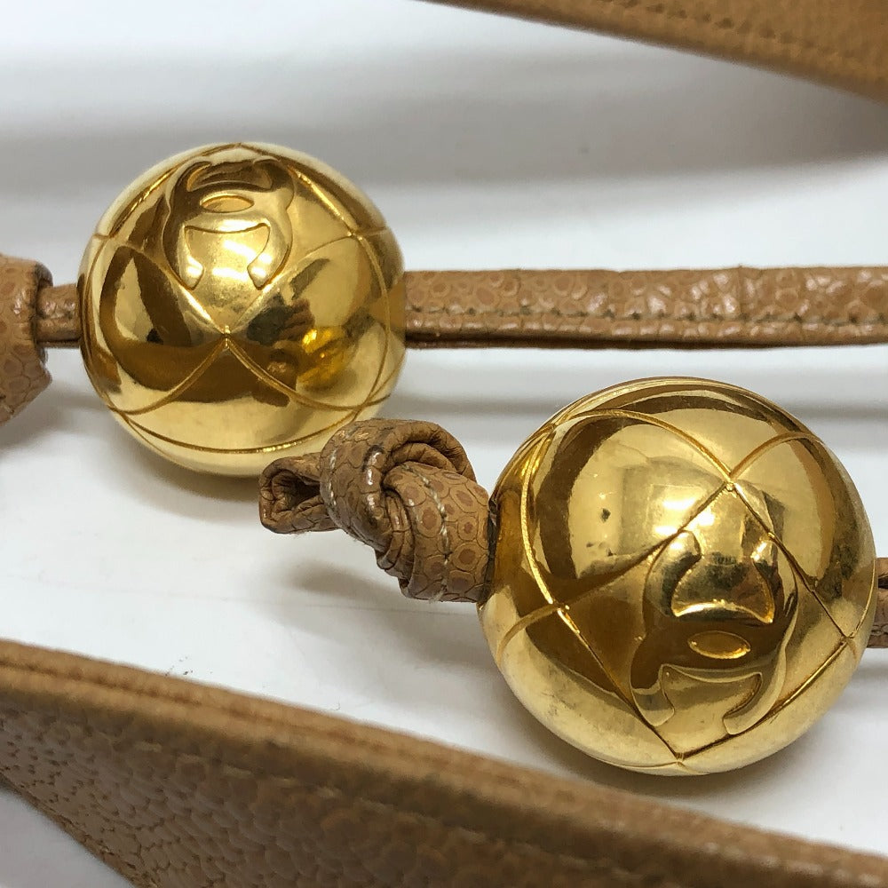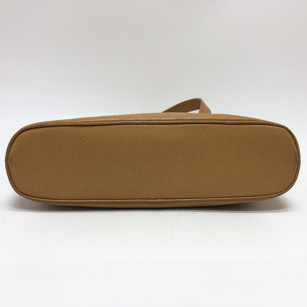 CHANEL Tote Bag Caviar skin beige Coco ball COCO Mark Women Used Authentic