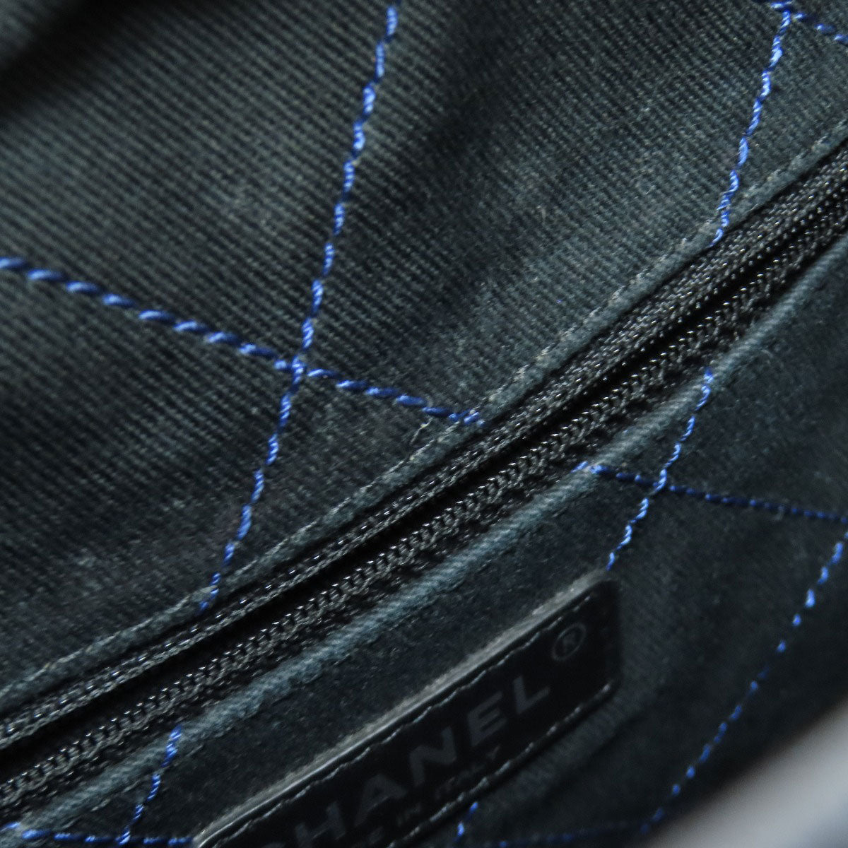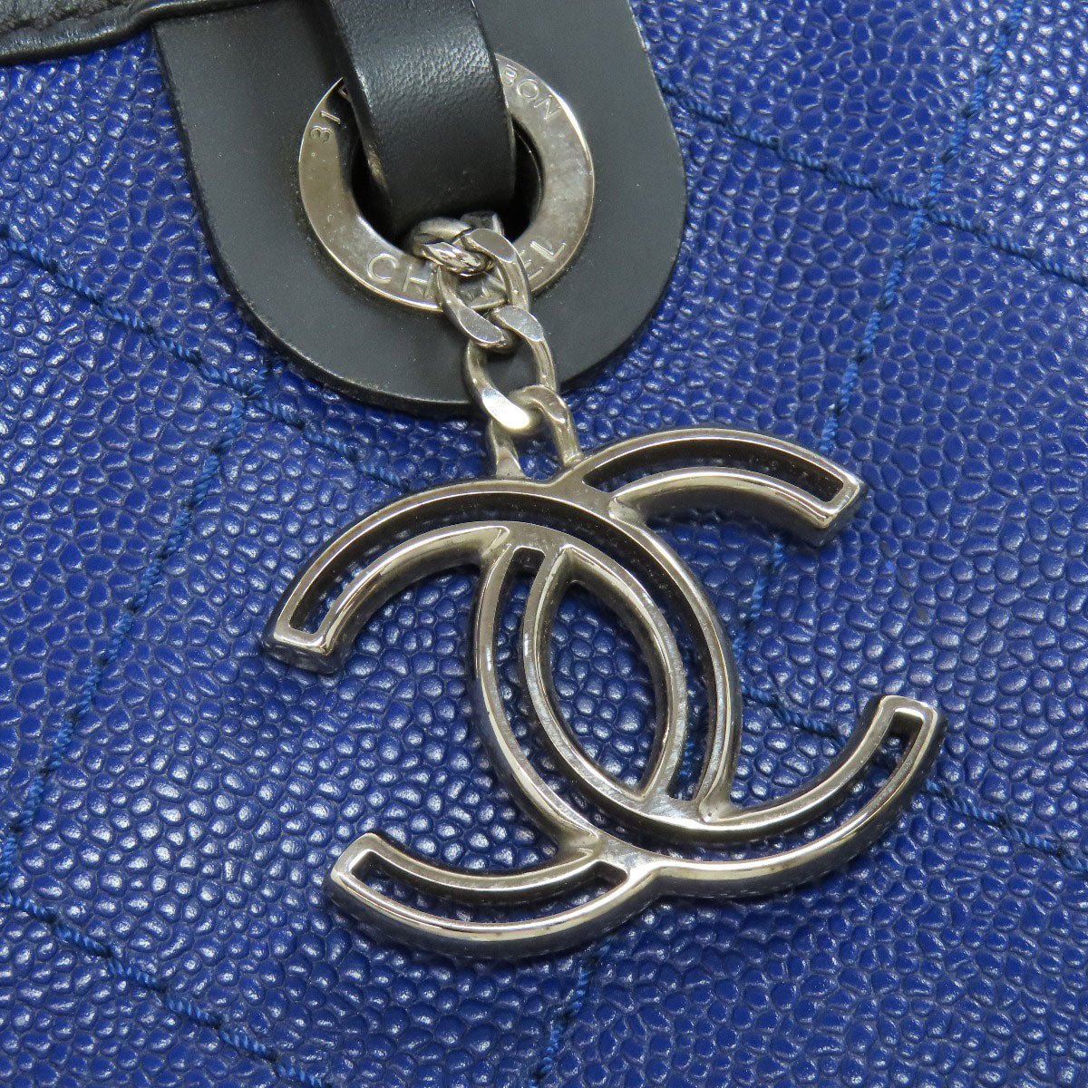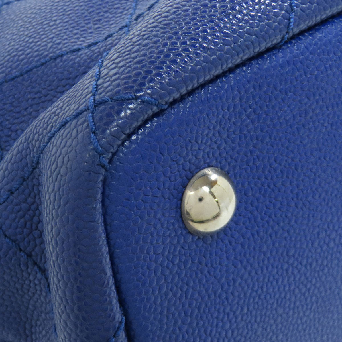 CHANEL Tote Bag Grained Calfskin Skin blue Wild stitch Silver Metal