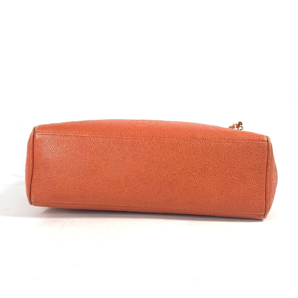 CHANEL Tote Bag Caviar skin Orange Chain bag Triple Coco CC COCO Mark Women Used Authentic