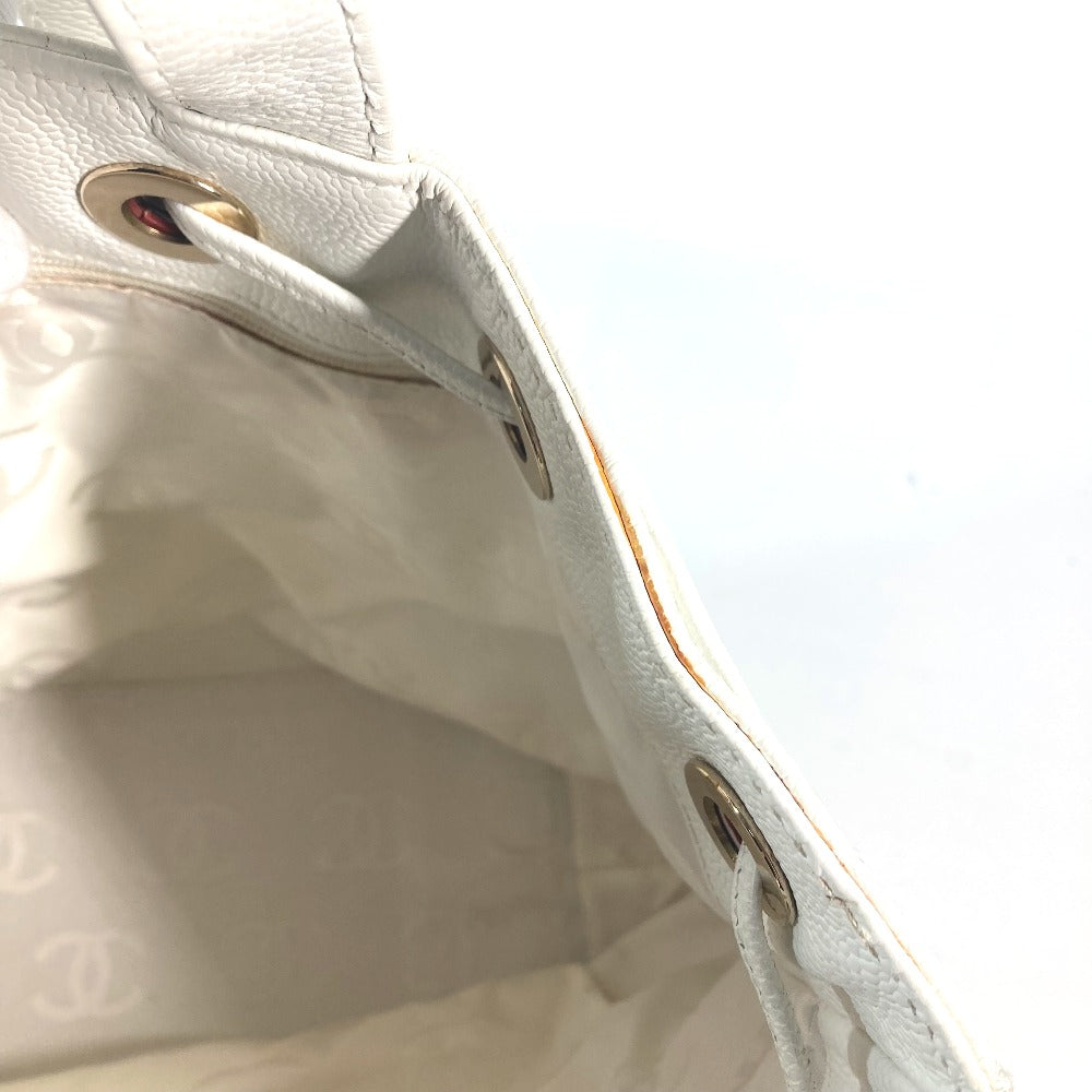 CHANEL Tote Bag Caviar skin white CC COCO Mark purse Women Used Authentic