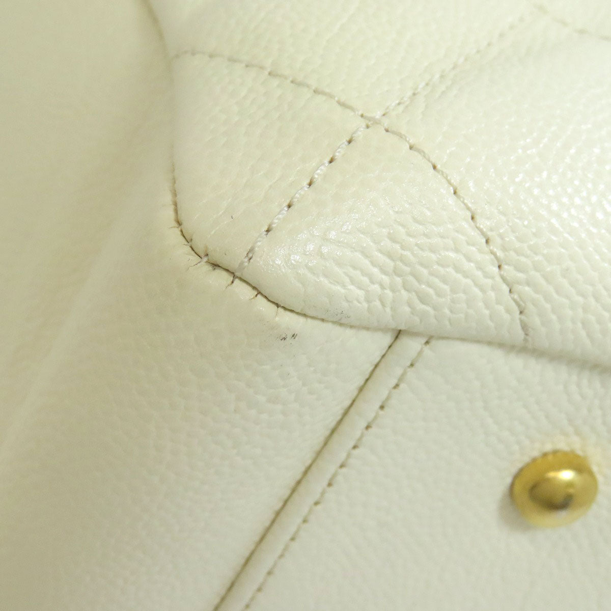 CHANEL Tote Bag Grained Calfskin Skin white Chain Tote Gold Metal 2WAY Women Used Authentic