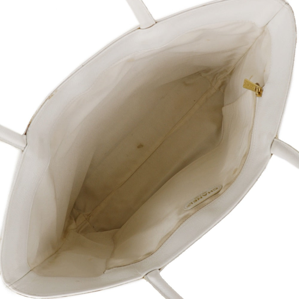 CHANEL Tote Bag Caviar skin White COCO Mark Women Used Authentic