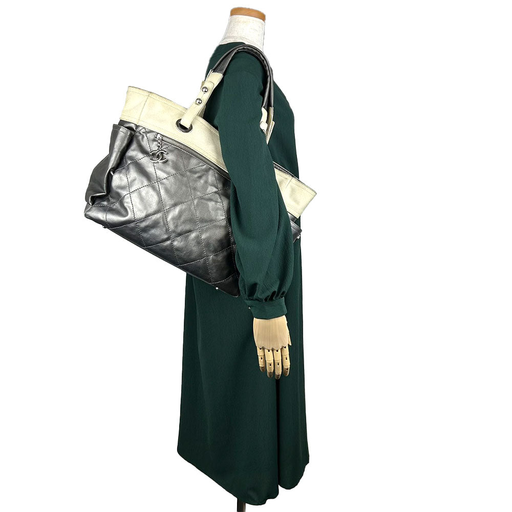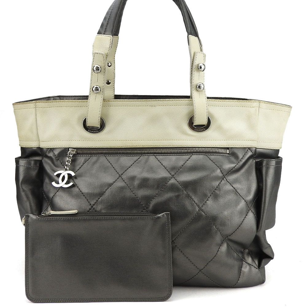 CHANEL Tote Bag Coated canvas Silver Paris Biarritz GM Women Used Authentic