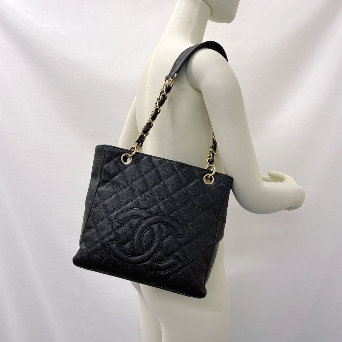 CHANEL Tote Bag Matt caviar skin black COCO Mark PST Matelasse