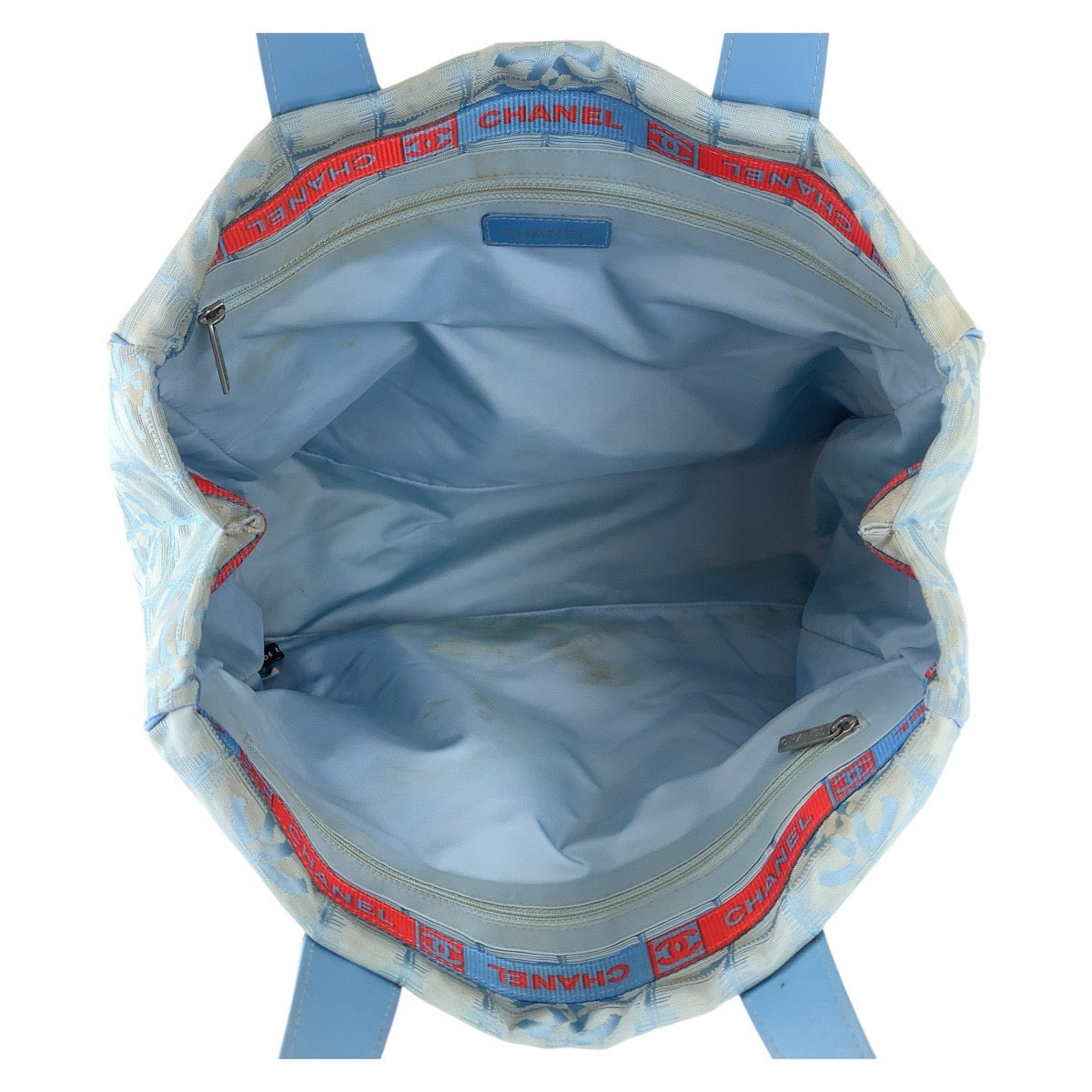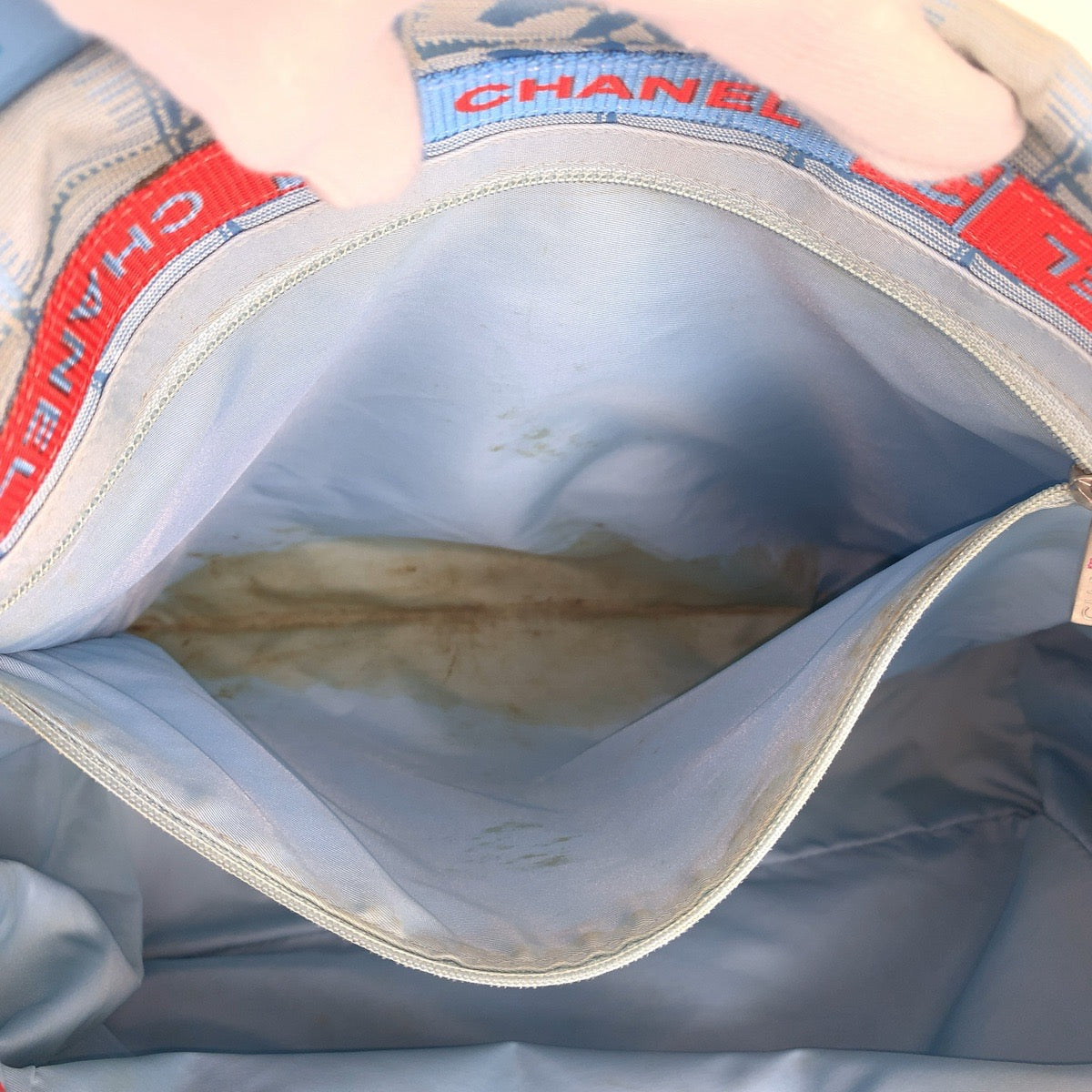 CHANEL Tote Bag Nylon, Leather Blue Silver Metal Tote Bag Shoulder Bag Neutral Tote New travel line Women Used Authentic