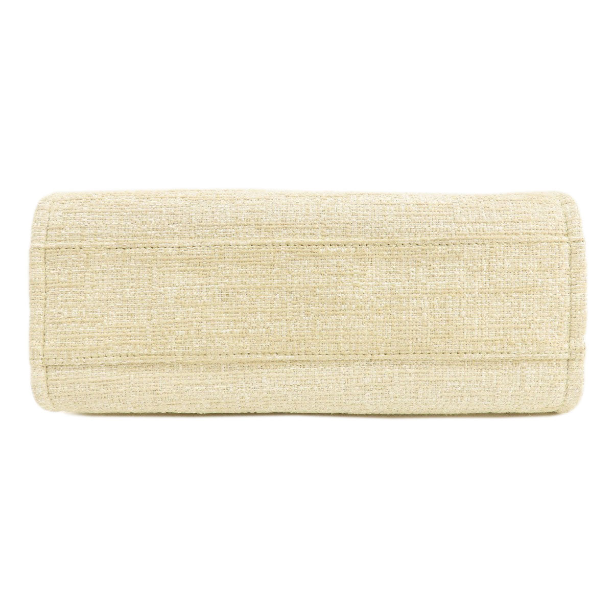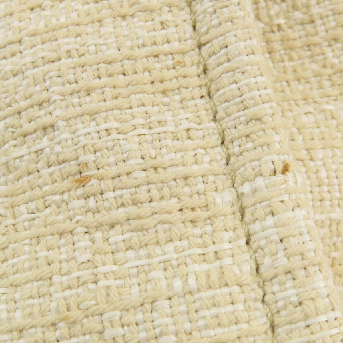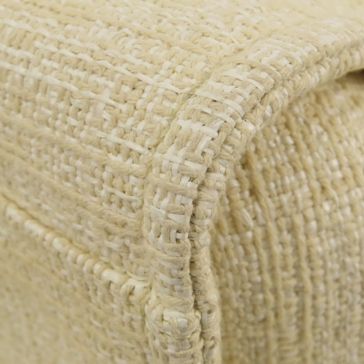 CHANEL Tote Bag Tweed white Deauville MM Gold Metal Women Used Authentic