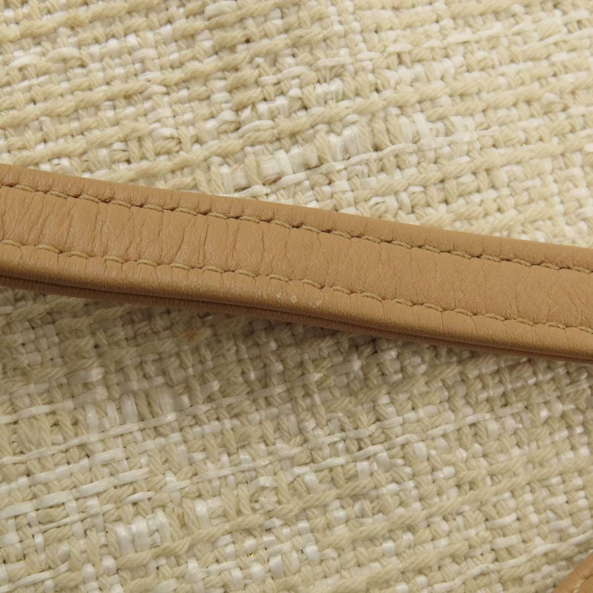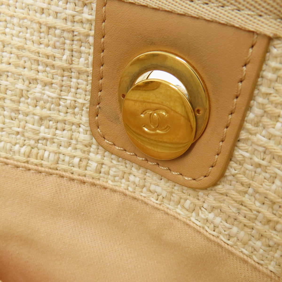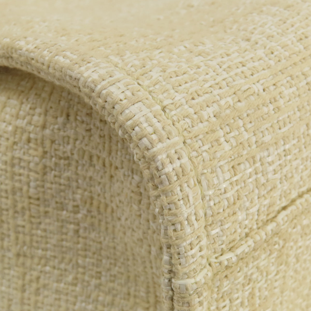 CHANEL Tote Bag Tweed white Deauville MM Gold Metal Women Used Authentic