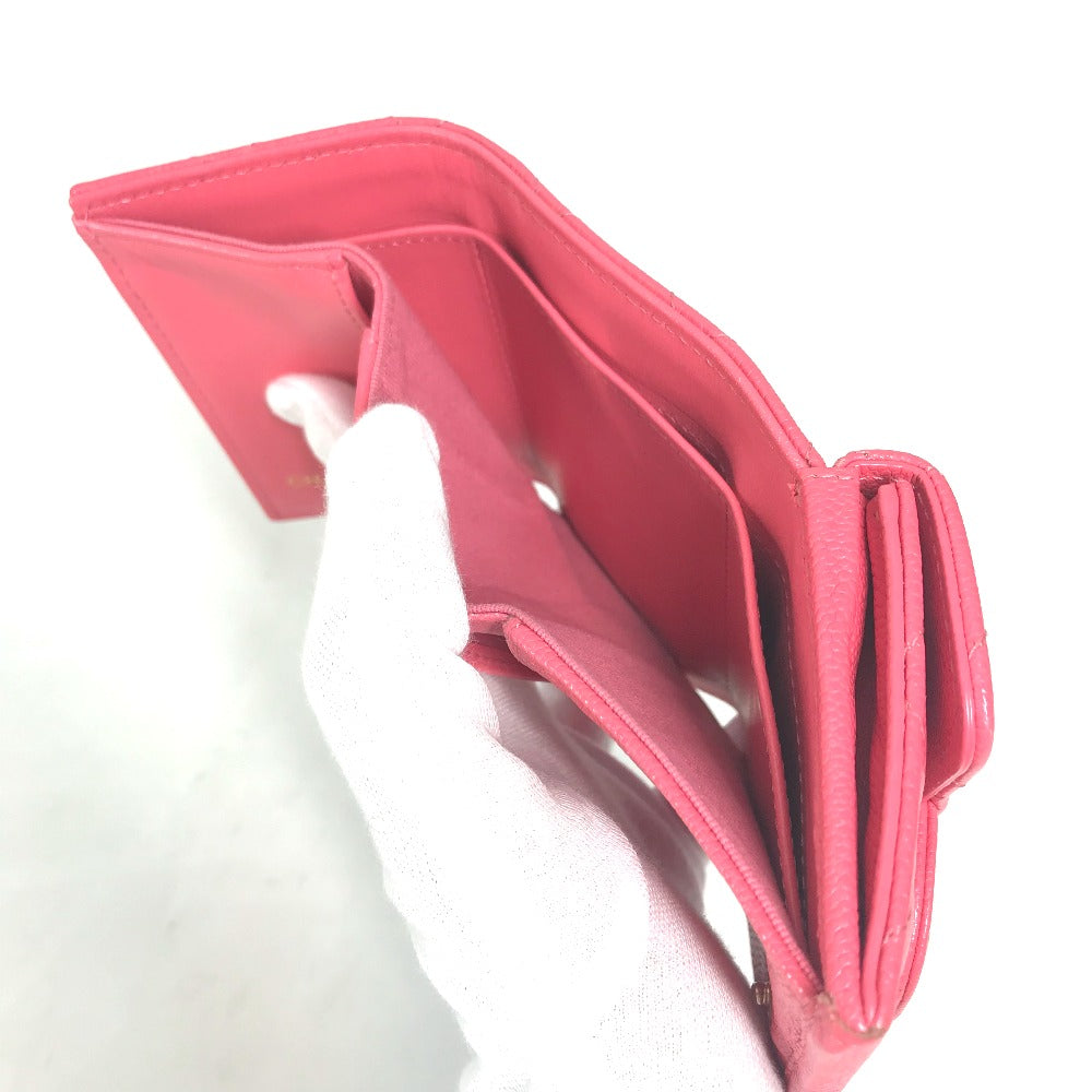 CHANEL Trifold wallet Caviar skin pink quilting CC COCO Mark Matelasse Women Used Authentic