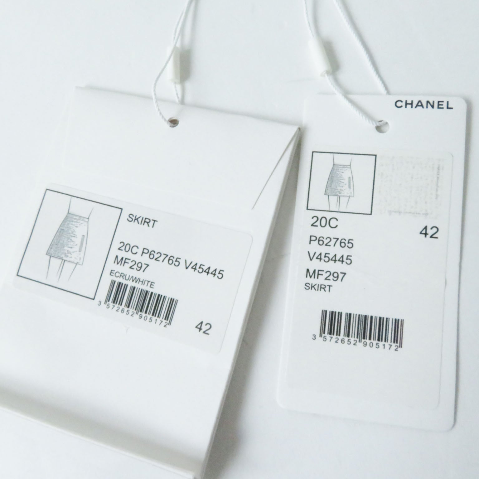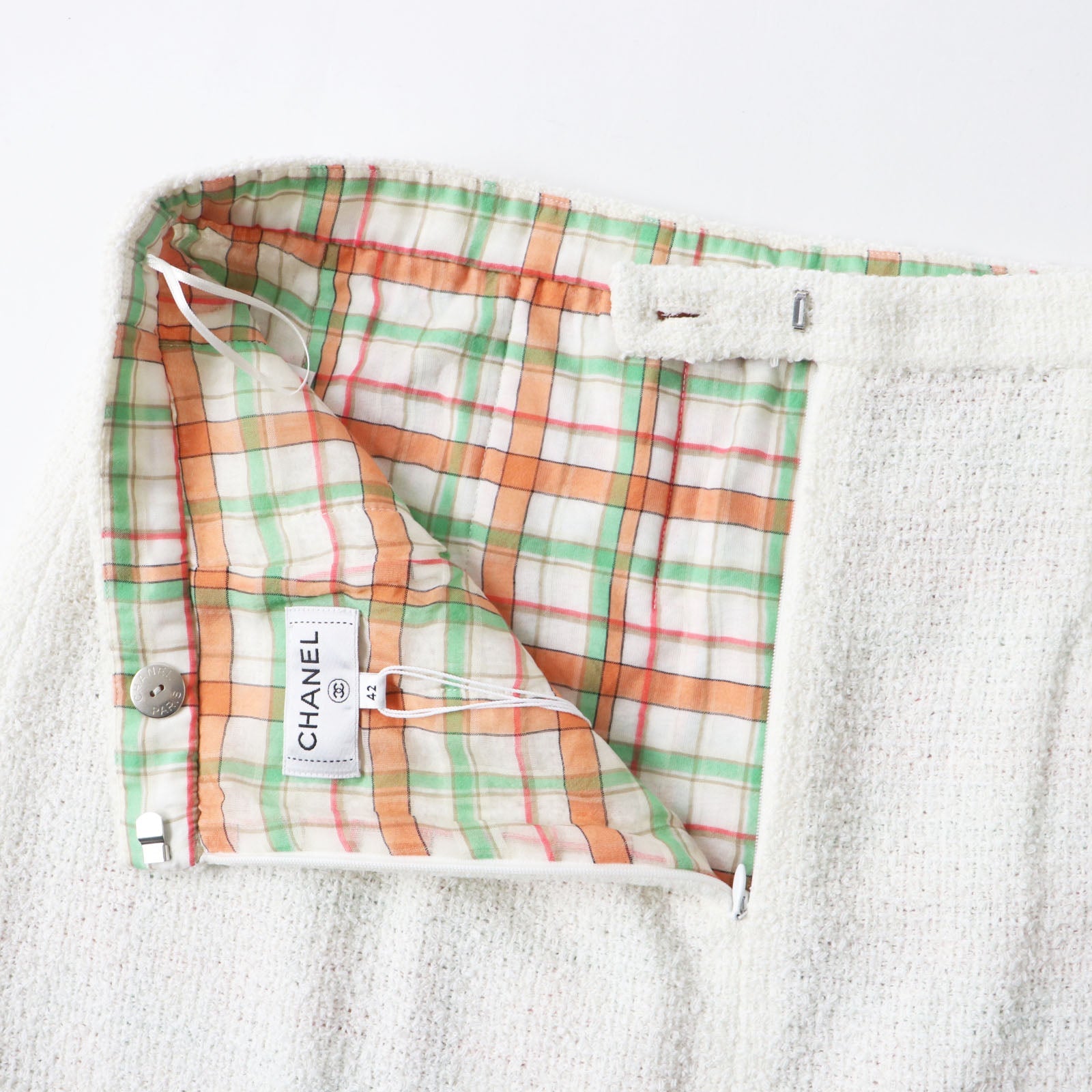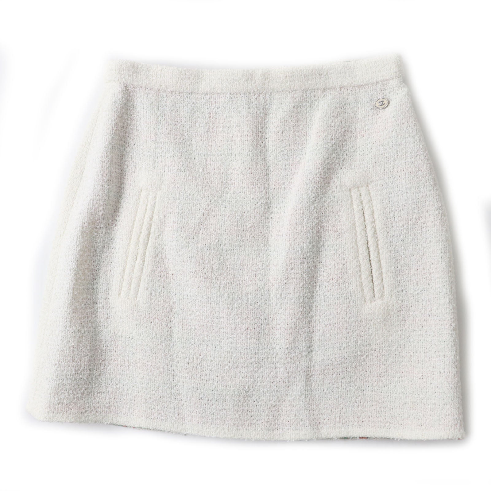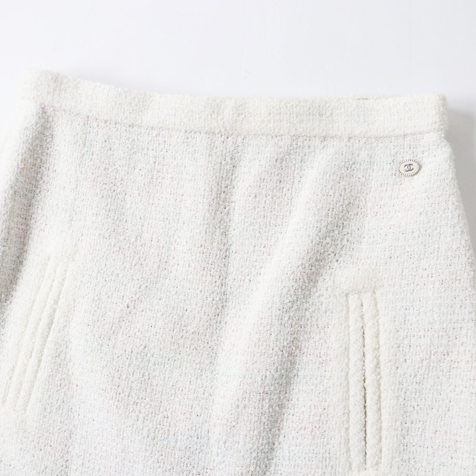 CHANEL Tweed skirt 20C P62765 Outer: 39% nylon, Outer: 22% cotton, Outer: 17% polyester, Outer: 14% acrylic, Outer: 8% wool, Lining: 71% cotton, 29% silk Ecru Women 42 Used Authentic