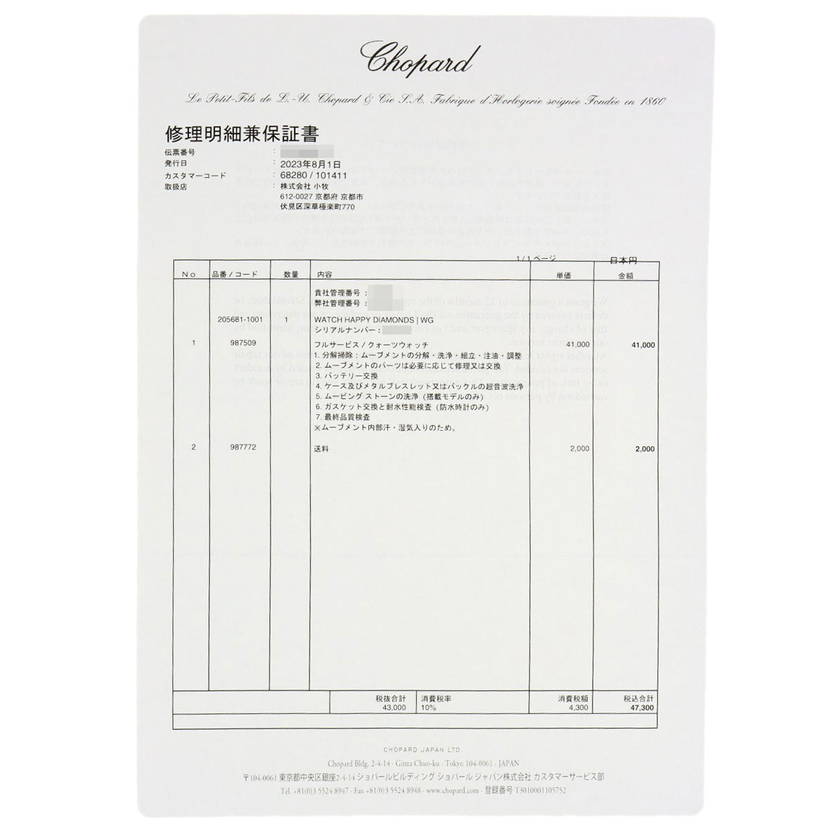 Chopard Watches Quartz 20/5681 K18WG, leather Silver Happy Diamonds Maker Complete Silver dial Women Used Authentic