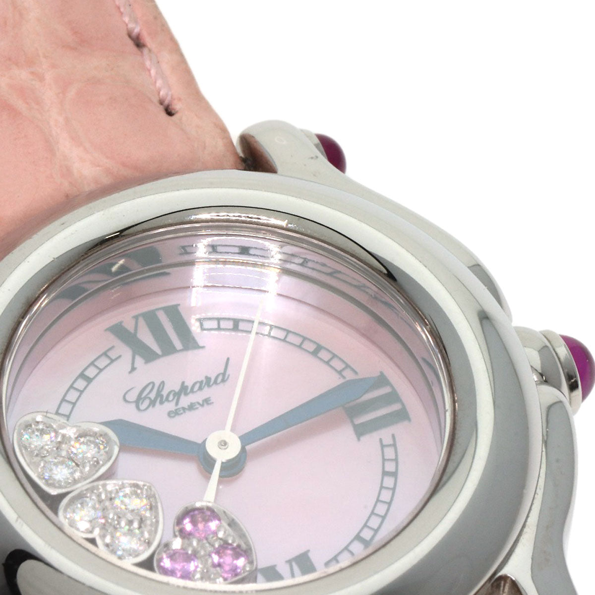 Chopard Watches Quartz 27/8245 Metal, Leather Silver Happy sports Pink shell dial Women Used Authentic