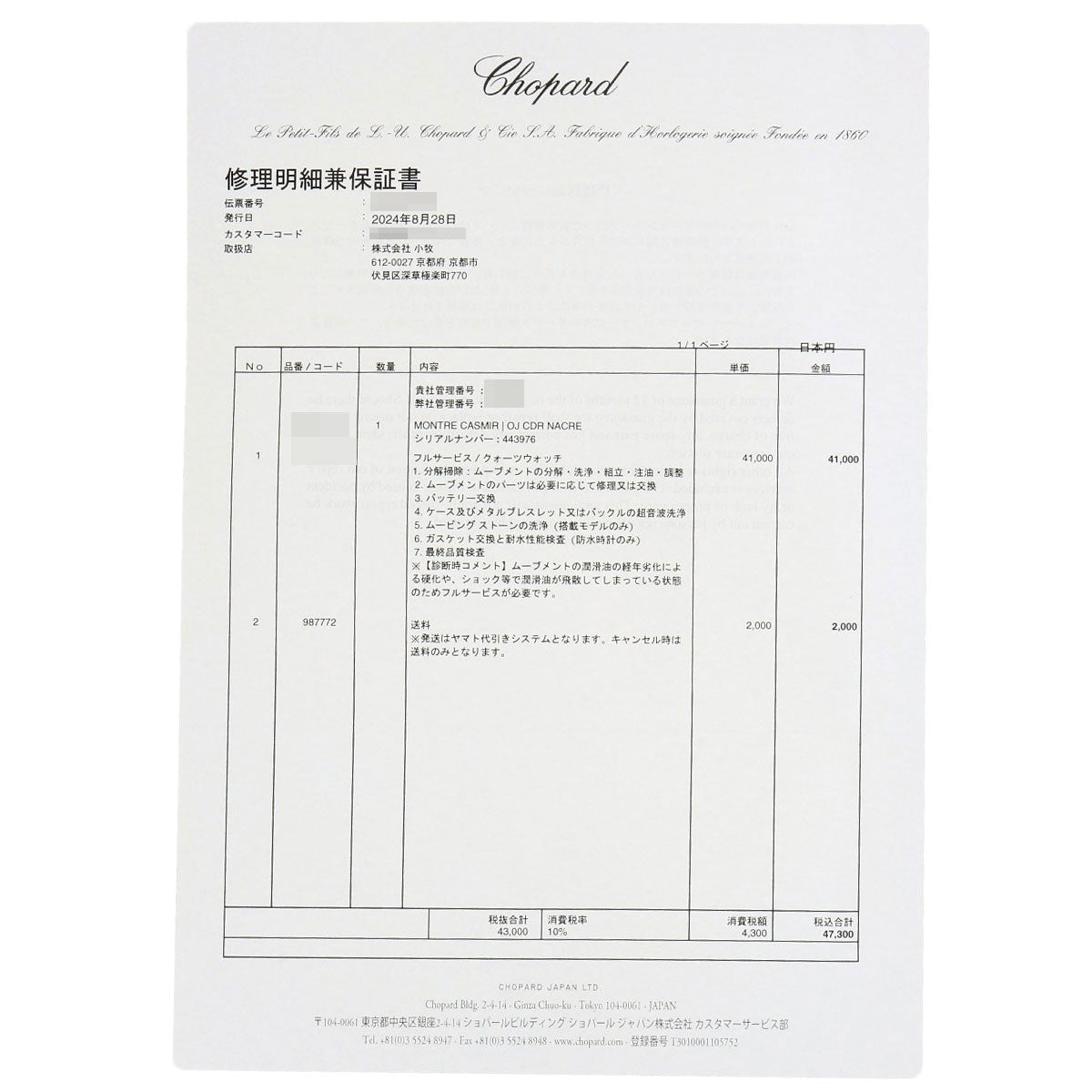 Accessories Chopard warranty, repair certificate, box, replacement strap