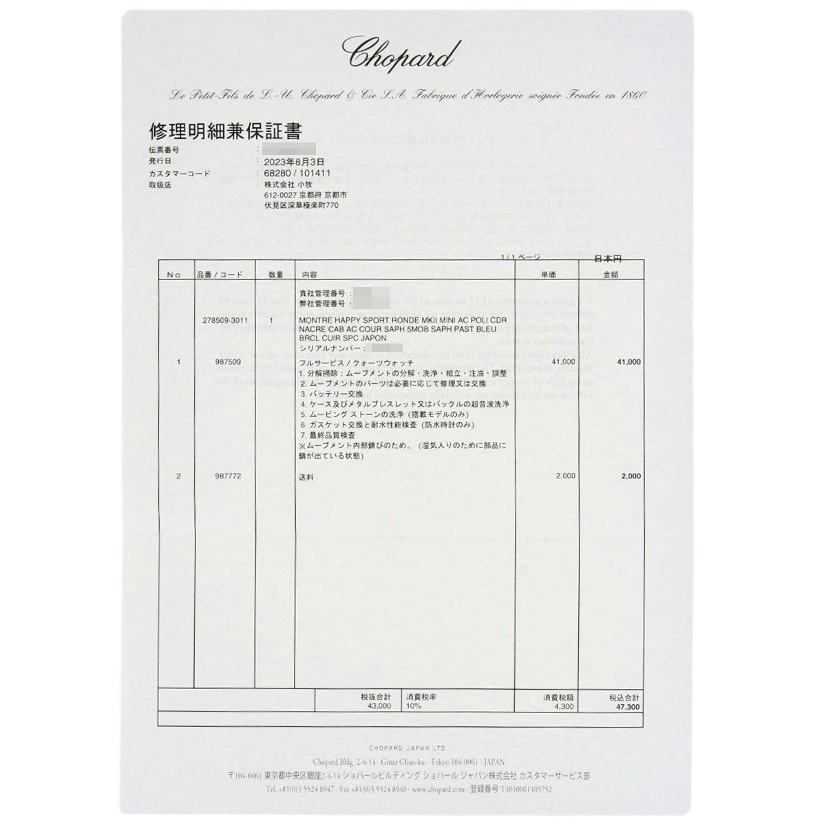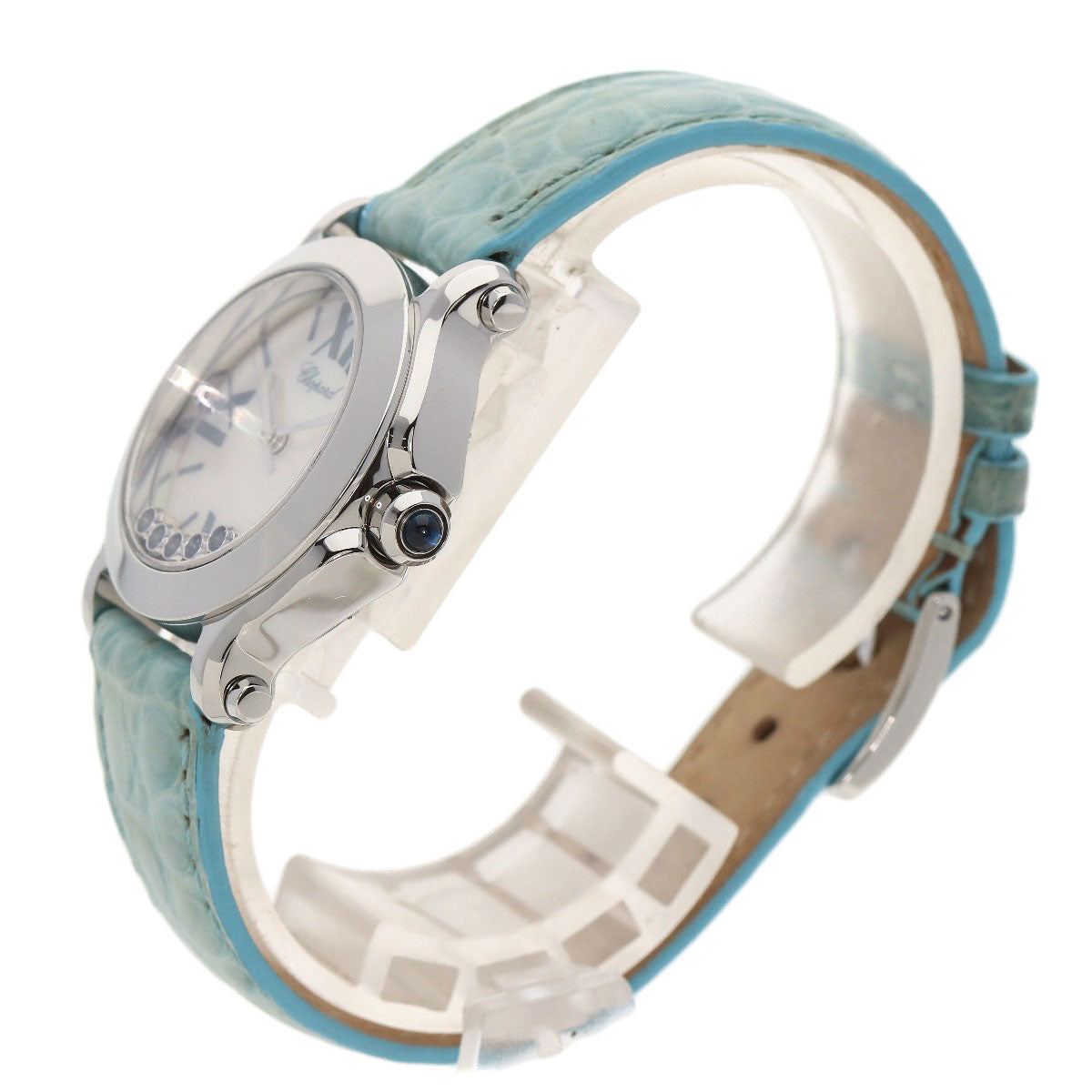 Chopard Watches Quartz 8509 Stainless Steel, Leather Silver Happy Sports Maker Complete White shell dial Women Used Authentic