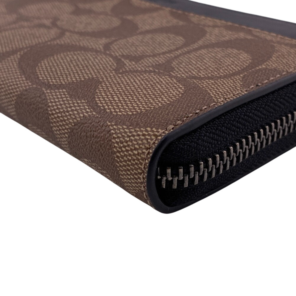 COACH Long Wallet Purse PVC coated canvas, leather Brown accordion Signature Zip around mens Used Authentic