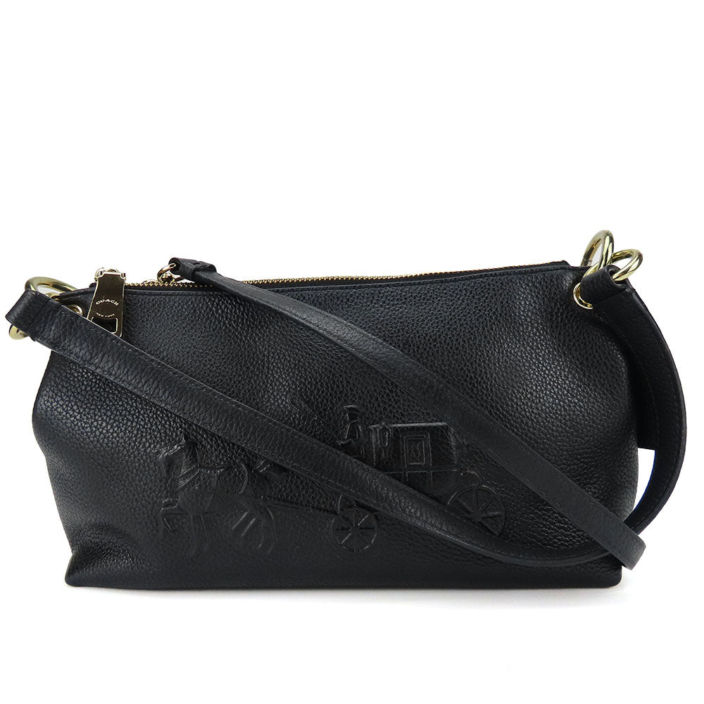 COACH Shoulder Bag 33521 leather black Charlie Embossed Horse and Carriage Women Used Authentic