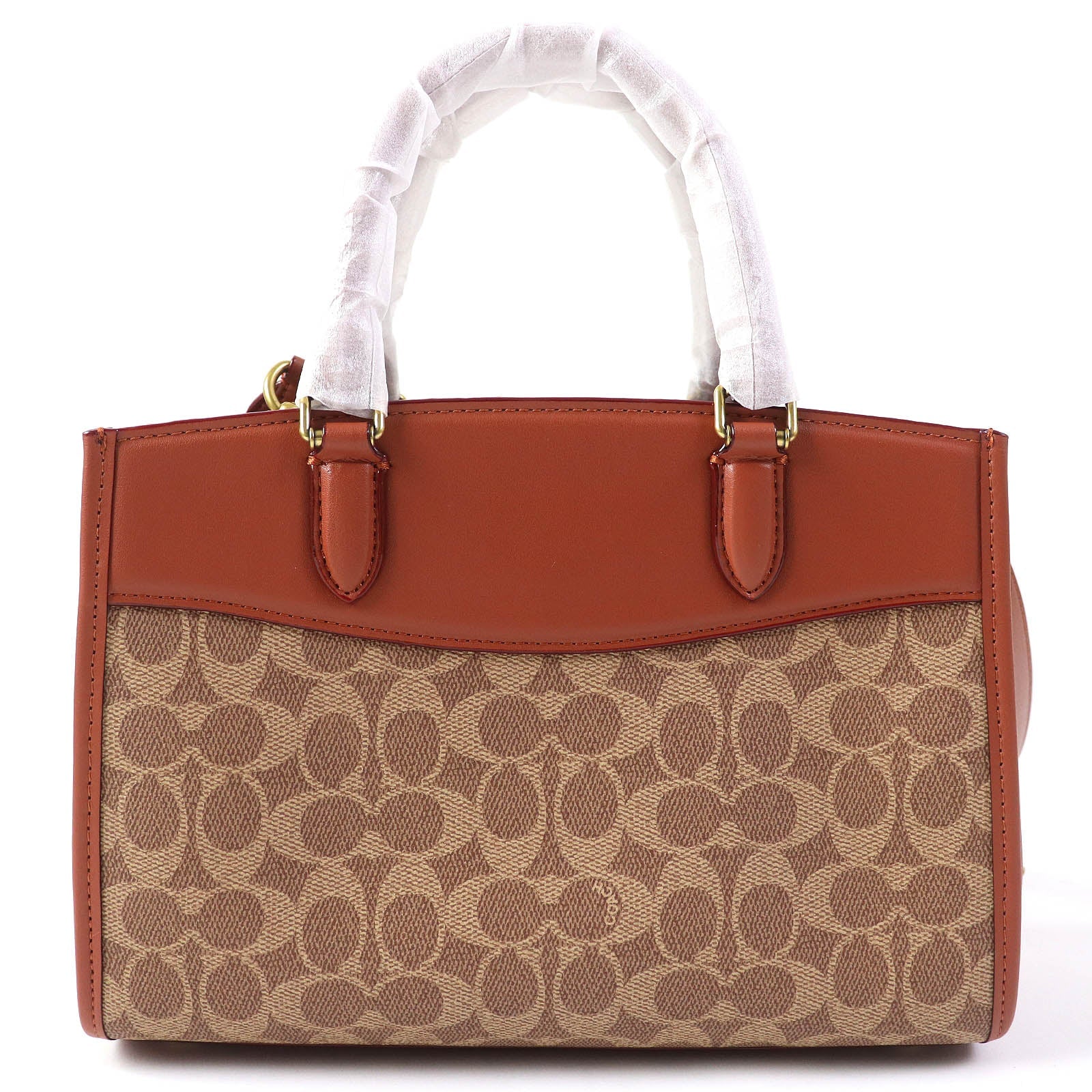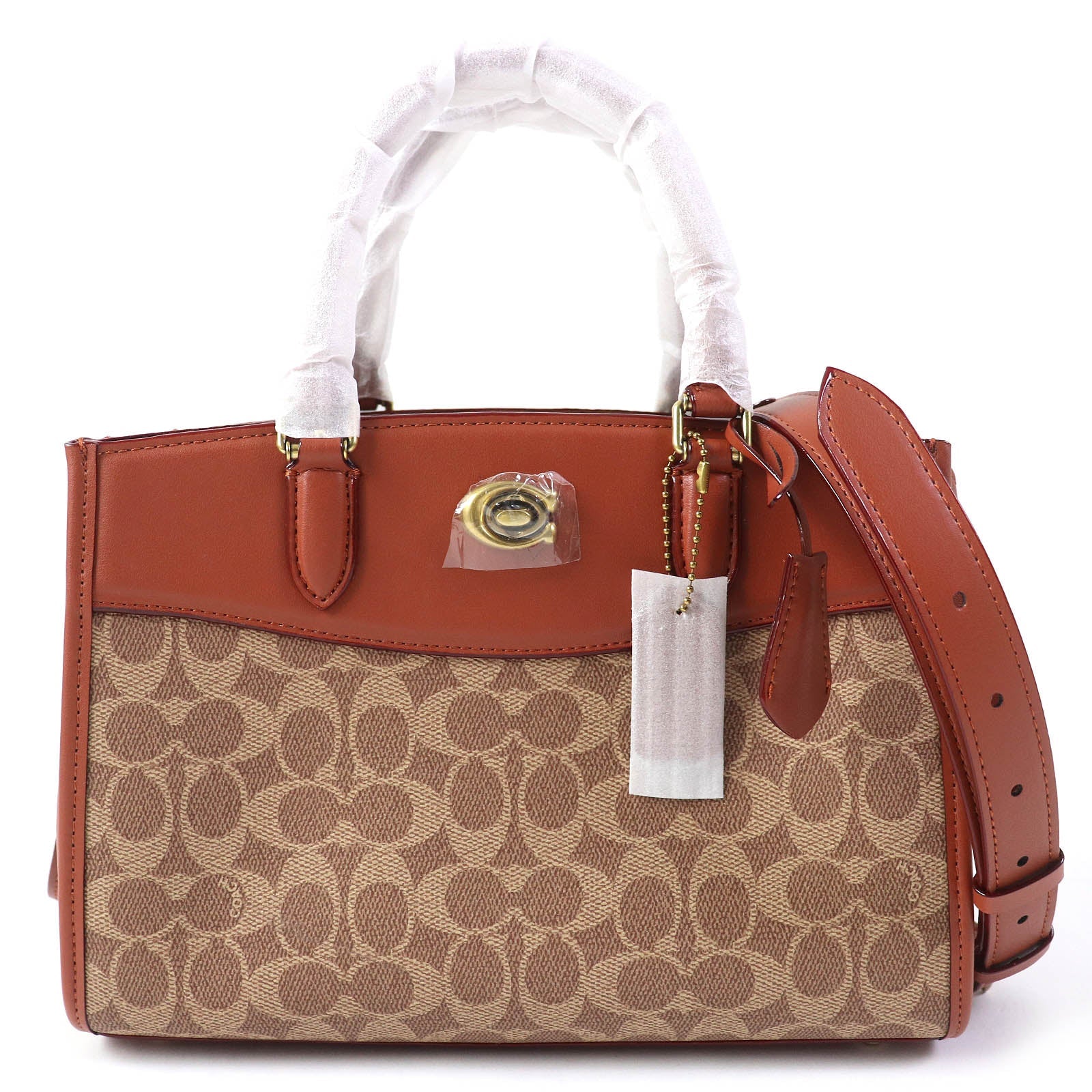COACH Shoulder Bag CE731 Signature Coated Canvas, Refined Calfskin Leather Beige brown Brook Carryall Signature Women Used Authentic
