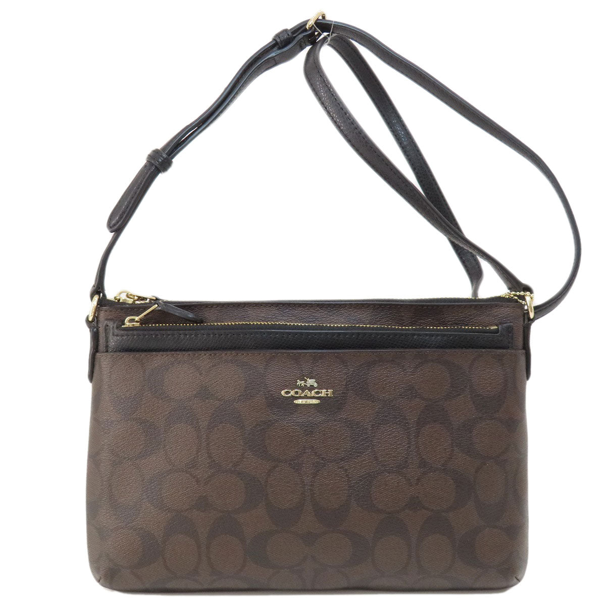 COACH Shoulder Bag F52657 PVC black Signature Women Used Authentic